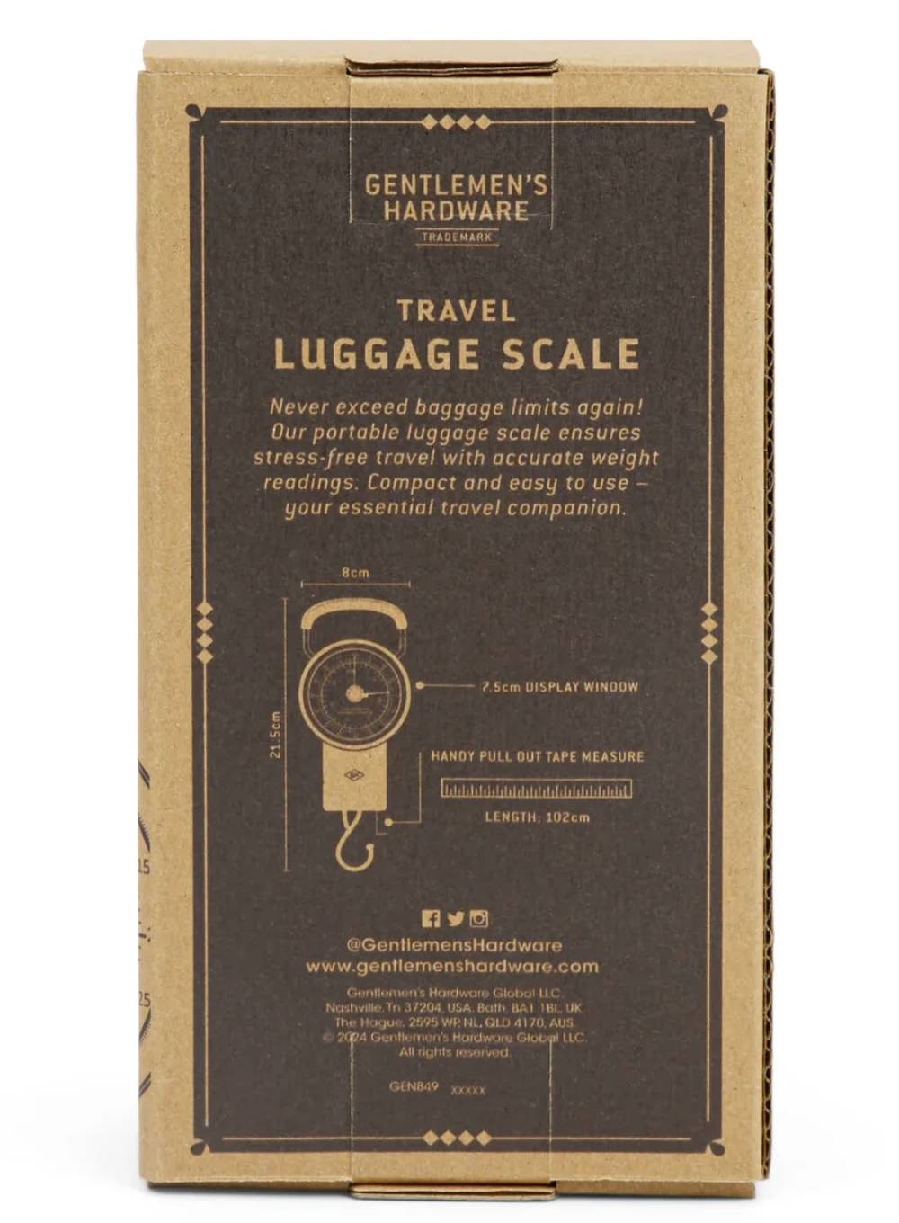 Poręczna waga podróżna Gentlemen’s Hardware Travel Scale to niezawodne narzędzie, które pozwala szybko i dokładnie sprawdzić wagę bagażu przed każdą podróżą - koniec z opłatami za nadbagaż.