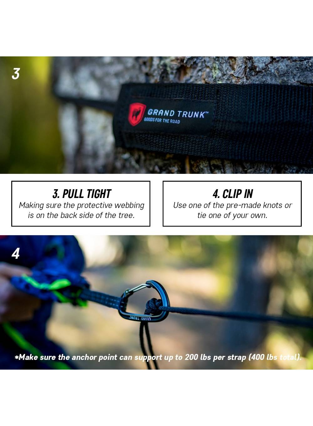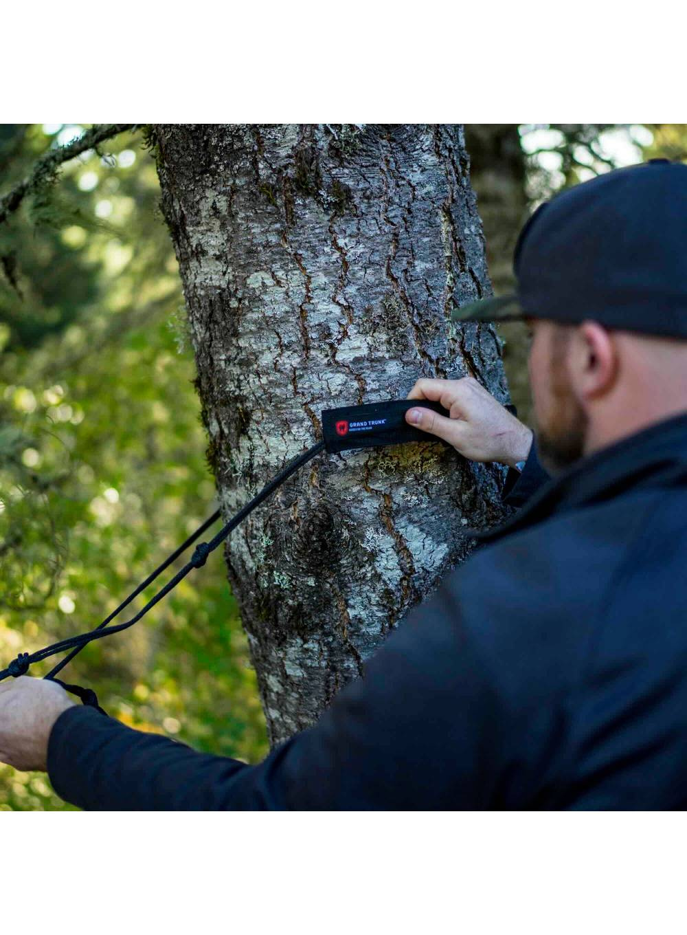 Grand Trunk Tree Slings to niezawodny zestaw do zawieszania hamaka, który pozwala na szybki montaż i bezpieczne użytkowanie w terenie. Przyjazne dla drzew paski spełniają wymagania parków stanowych i narodowych.