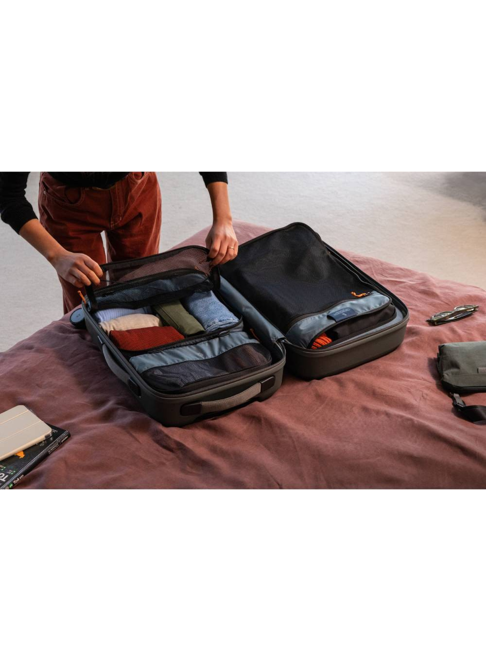 • Wyjmowane organizery do pakowania, które pełnią również funkcję wewnętrznej przegrody; można je dostosować za pomocą łatwych w użyciu mocowań typu "toggle"