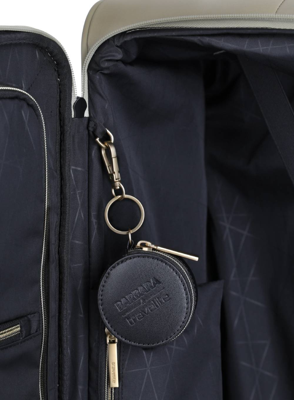 Wykonana z trwałego nylonu pochodzącego z recyklingu, z eleganckimi, złotymi detalami oraz ozdobnym brelokiem, prezentuje się nowocześnie i kobieco. Zintegrowany zamek TSA zapewnia spokój ducha podczas podróży lotniczych, chroniąc zawartość bagażu.