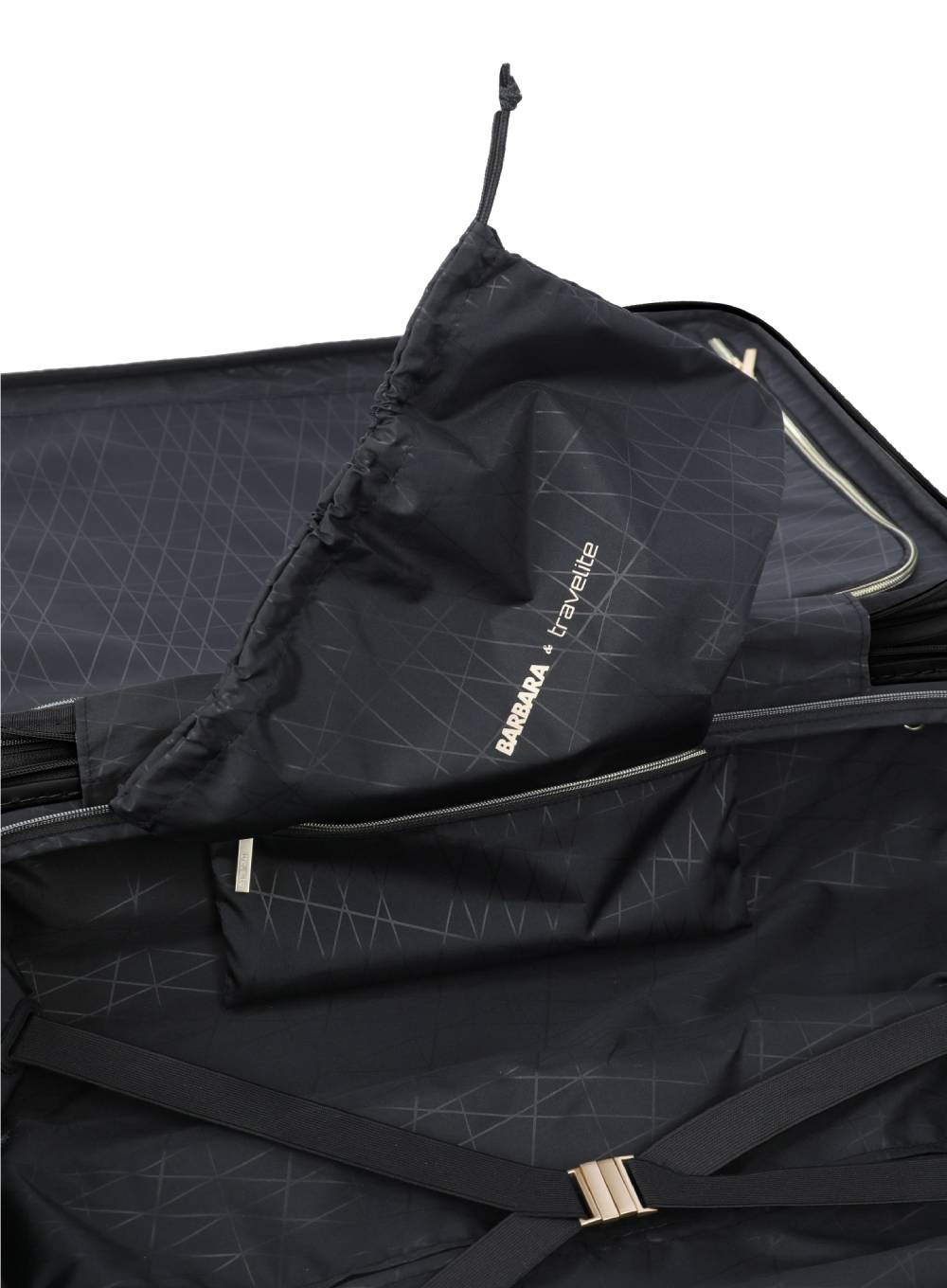 Podróżowanie w dobrym stylu jeszcze nigdy nie było tak wygodne i świadome. Średnia poszerzana walizka Travelite Barbara Stepp EXP  model z kolekcji stworzonej wspólnie z marką BARBARA, który doskonale łączy elegancję, bezpieczeństwo i ekologiczną odpowiedzialność.