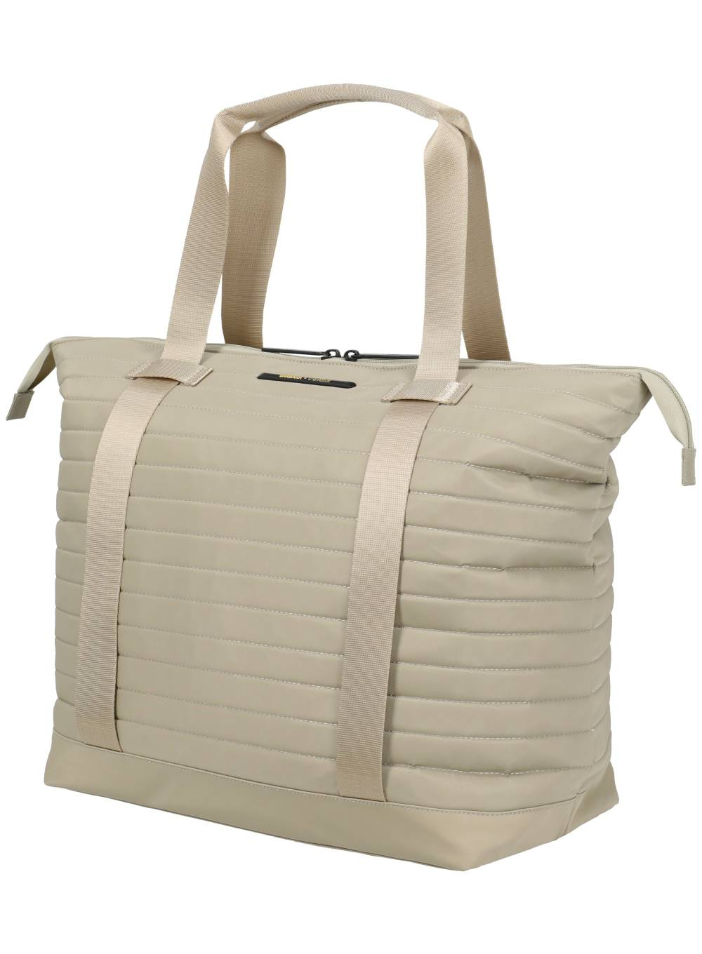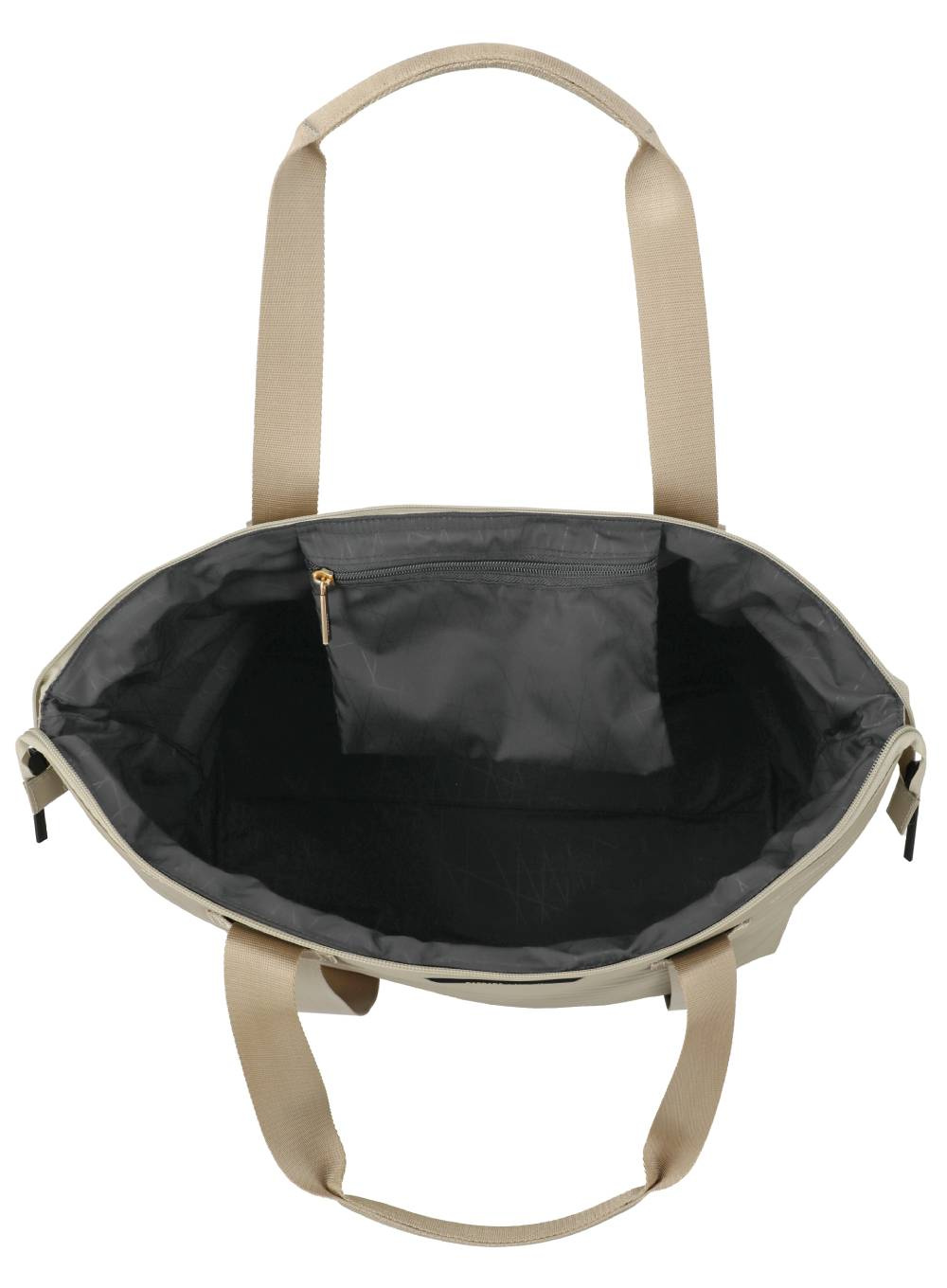 Torba posiada szerokie otwarcie ułatwiające pakowanie i dostęp do zawartości. W środku znajduje się zamykana kieszeń oraz funkcjonalny system mocowania, umożliwiający przypięcie np. kurtki lub maty do jogi. Dodatkowa kieszeń zapinana na zamek oraz możliwość zamocowania torby na walizce dzięki funkcji clip-on czynią ją idealnym towarzyszem w podróży i codziennym użytkowaniu.