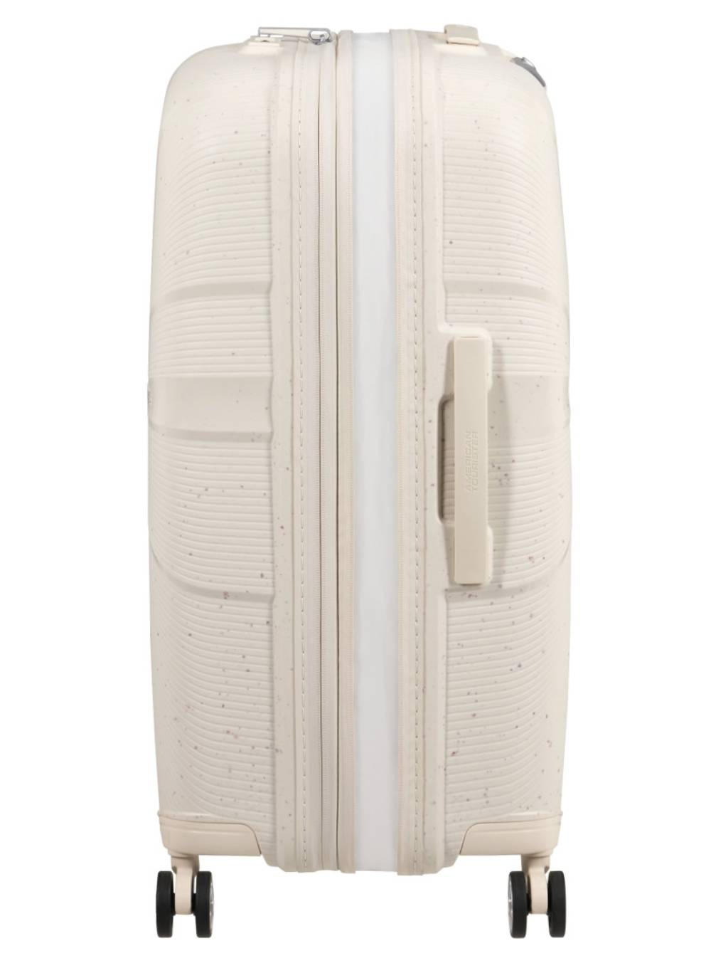 American Tourister StarVibe to nowoczesna średnia walizka poszerzana stworzona z myślą o komforcie podróżowania i dbałości o środowisko. Jej zewnętrzna powłoka w 83% wykonana jest z przetworzonego polipropylenu pochodzącego z recyklingu, co przekłada się na trwałość oraz lekkość konstrukcji. Wnętrze walizki, włącznie z podszewką, zamkami oraz elementami rozszerzającymi, zostało w 100% wykonane z plastiku PET z recyklingu, co odpowiada wykorzystaniu 24 butelek po 500 ml.