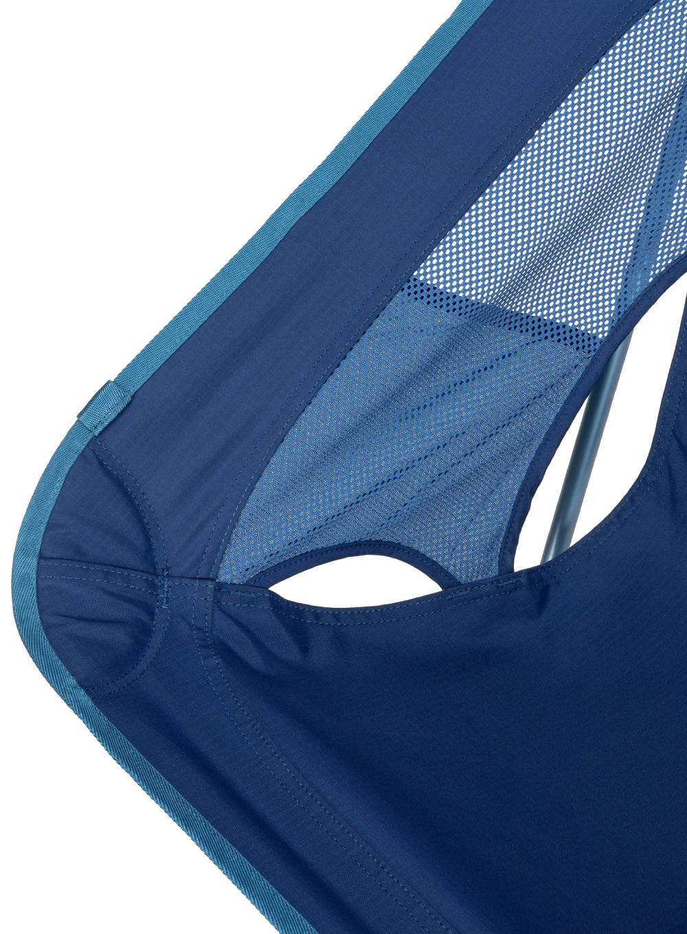 Chair One (re) to także wyższe siedzisko niż w klasycznej wersji, co ułatwia wstawanie i zwiększa wygodę. Dzięki zastosowaniu materiałów z certyfikatem bluesign® i przemyślanej wentylacji z siateczki, krzesło sprawdzi się zarówno na plaży, jak i w górskim biwaku.