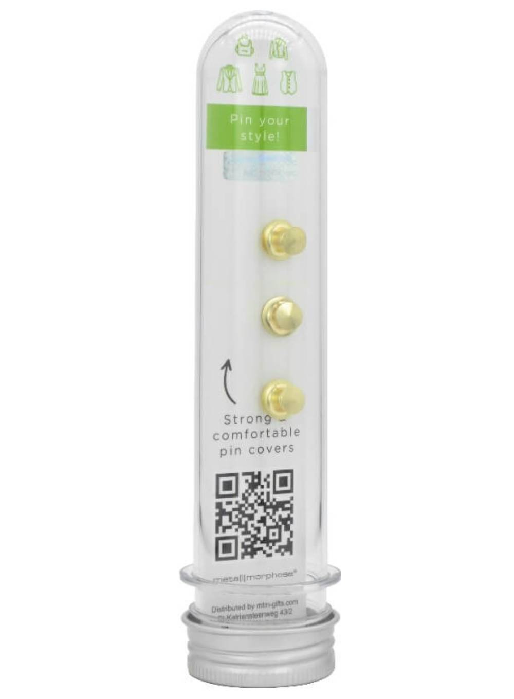 Stylowe detale, które przyciągają uwagę. Dwie wysokiej jakości przypinki Metalmorphose to oryginalny dodatek do ubrań, plecaka czy torby, zapakowany w elegancką, wielokrotnego użytku tubę.