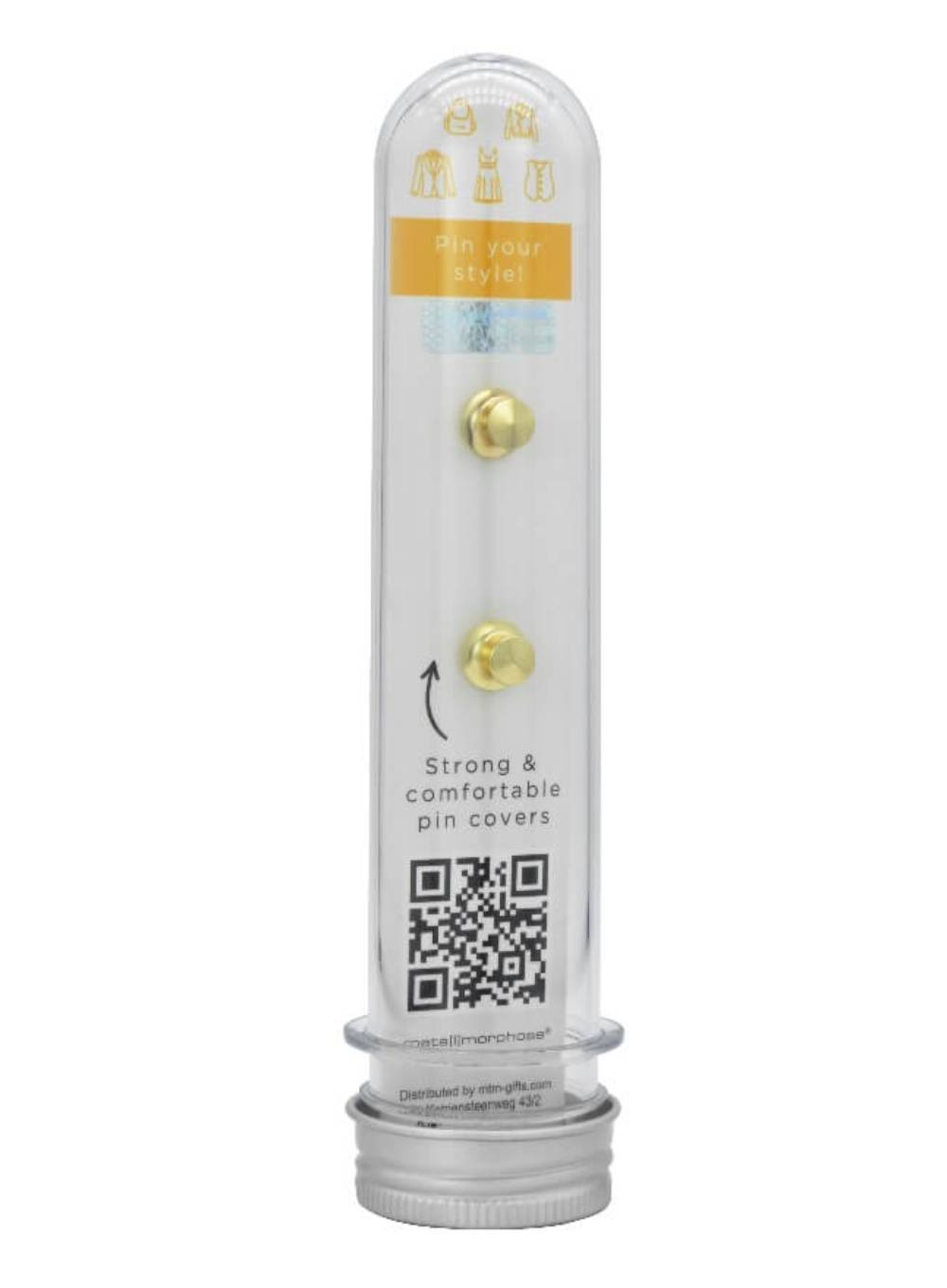 Stylowe detale, które przyciągają uwagę. Dwie wysokiej jakości przypinki Metalmorphose to oryginalny dodatek do ubrań, plecaka czy torby, zapakowany w elegancką, wielokrotnego użytku tubę.