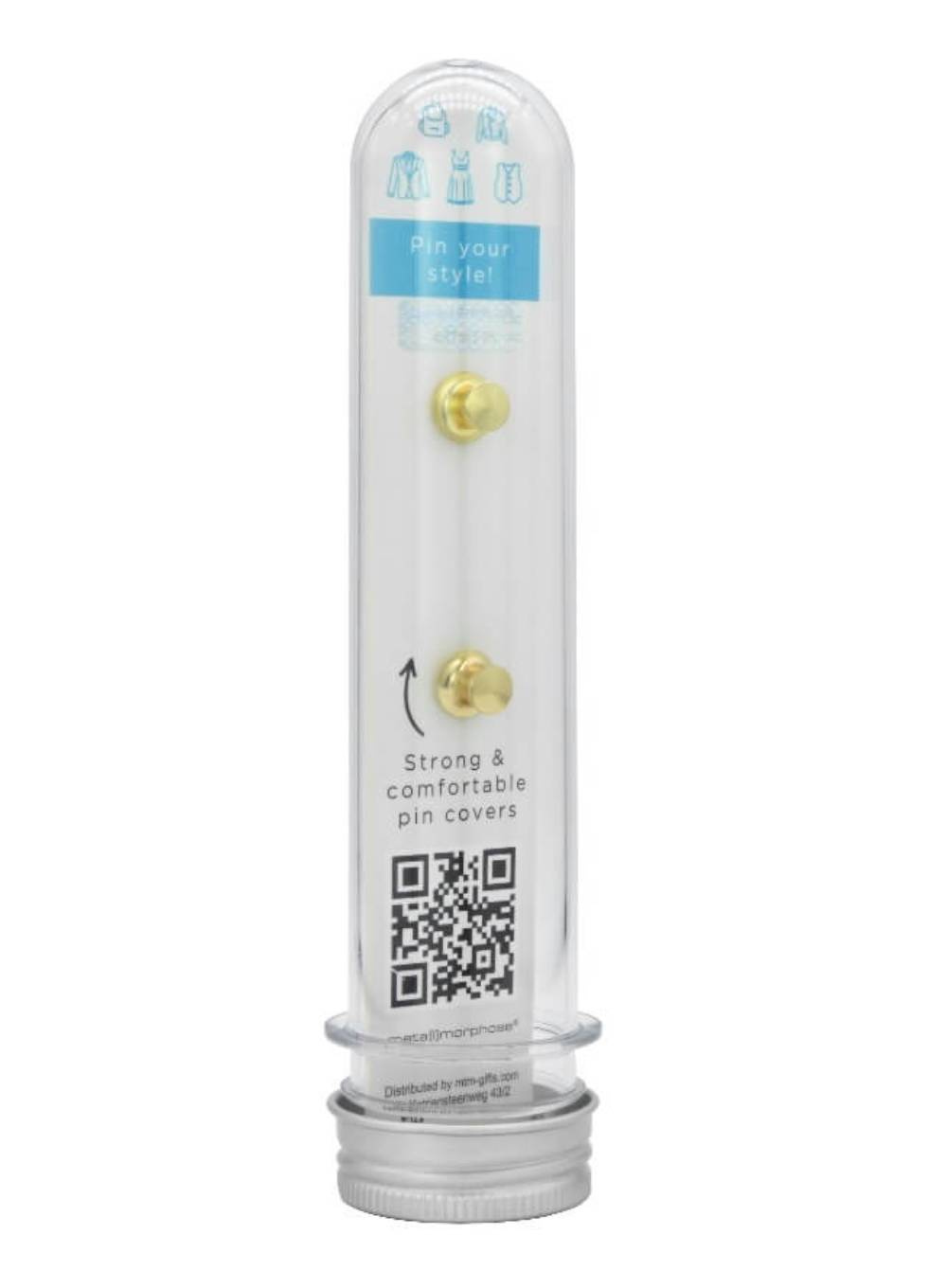 Stylowe detale, które przyciągają uwagę. Dwie wysokiej jakości przypinki Metalmorphose to oryginalny dodatek do ubrań, plecaka czy torby, zapakowany w elegancką, wielokrotnego użytku tubę.