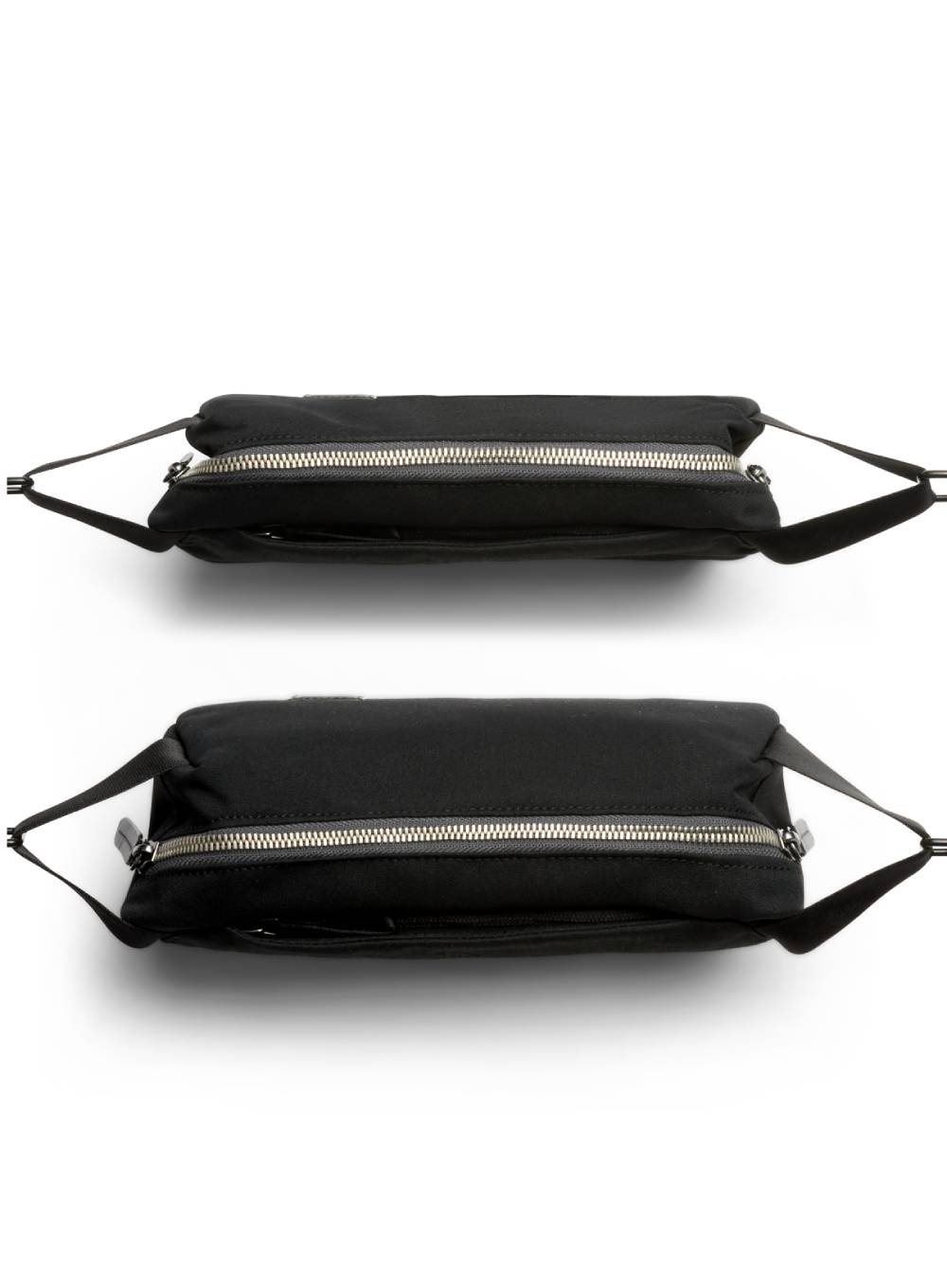 Dzięki regulowanemu paskowi w stylu pasów bezpieczeństwa torba dopasowuje się do każdej sylwetki, a dwukierunkowy zamek błyskawiczny umożliwia szybki dostęp z obu stron.