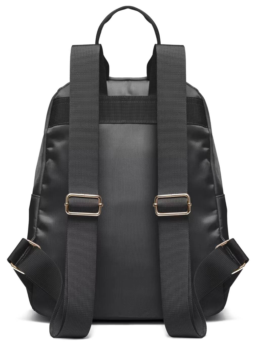 Model wyposażono w wygodny uchwyt, dzięki któremu można go nosić również w dłoni. Regulowane szelki umożliwiają dopasowanie do sylwetki, zapewniając komfort noszenia przez cały dzień. Na froncie plecaka znajdują się trzy zamykane kieszenie, które pomieszczą najpotrzebniejsze drobiazgi – telefon, dokumenty czy klucze. Całość dopełnia staranne wykonanie i dopracowane detale.