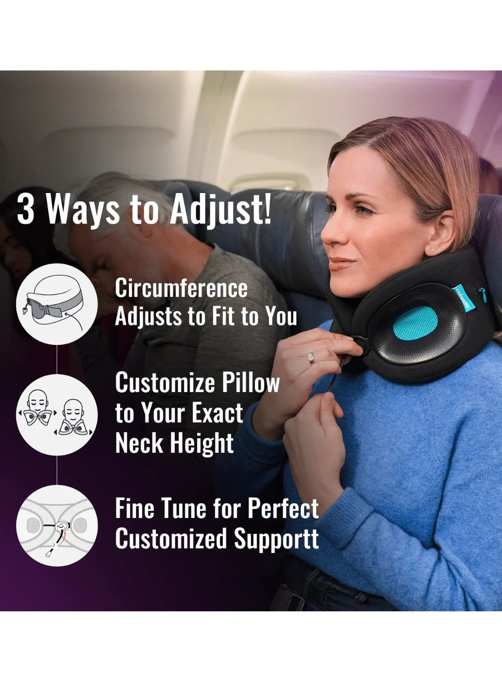 Poduszka podróżna Cabeau Evolution X zapewnia najwyższy poziom komfortu i indywidualnego dopasowania. Jako pierwsza na rynku umożliwia regulację obwodu, wysokości oraz zapięcia, dopasowując się do Twoich potrzeb.