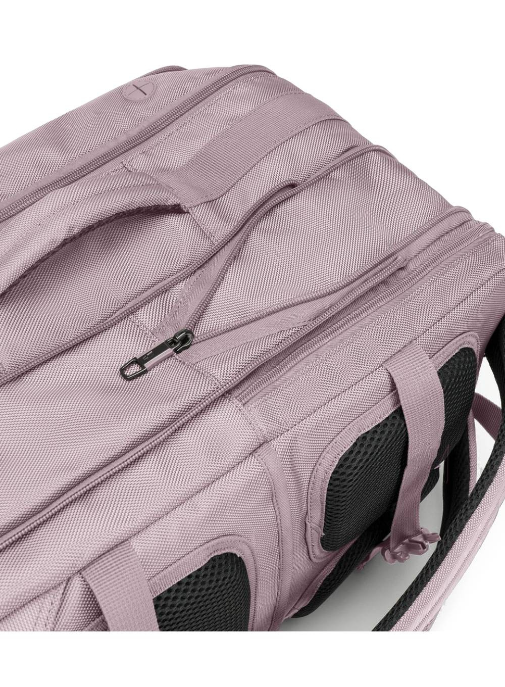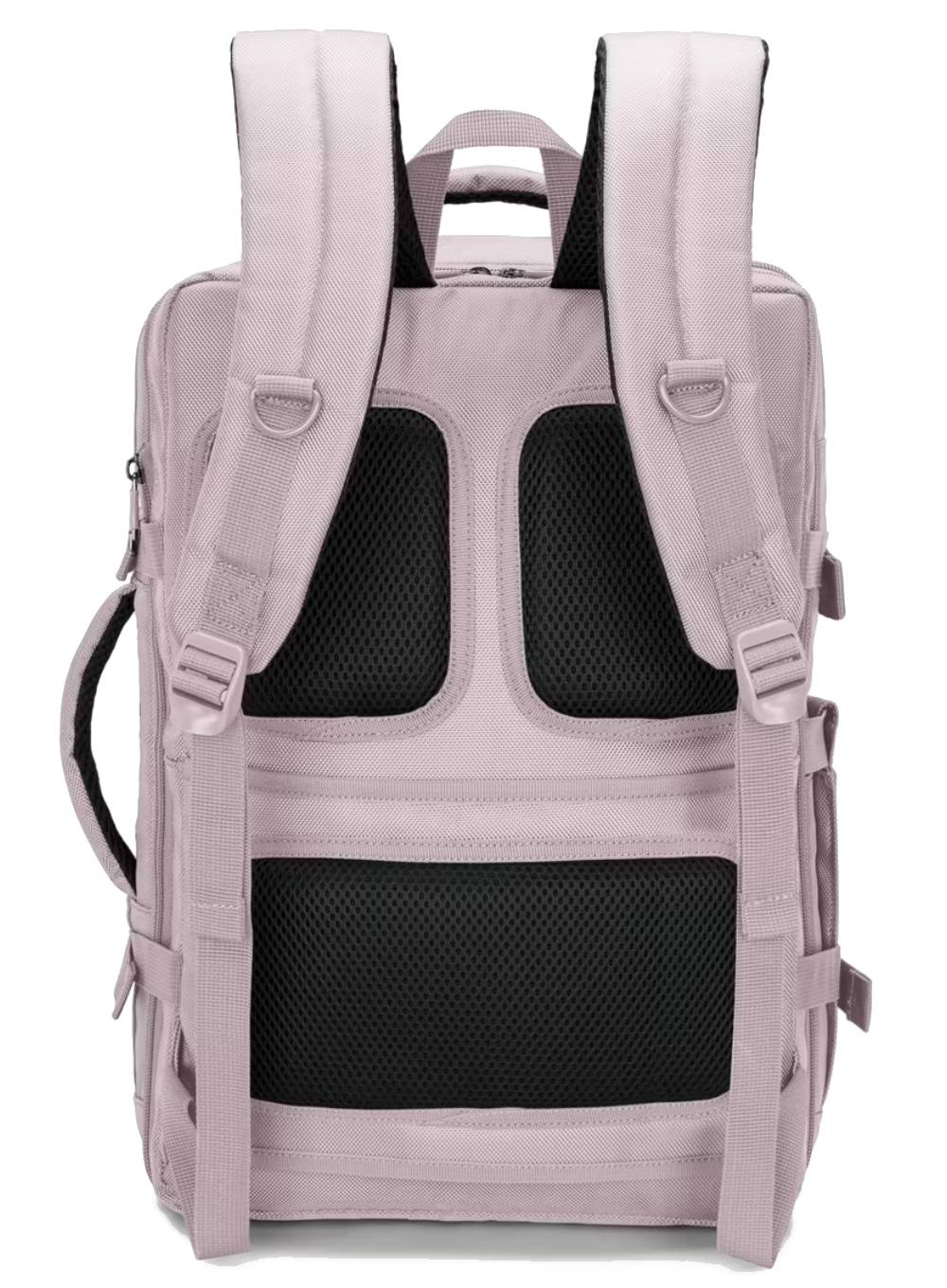 Komfort noszenia zapewniają wyprofilowane panele z oddychającej pianki oraz regulowane szelki, które można schować do specjalnej kieszeni, gdy nie są używane. Plecak można również umieścić na stelażu walizki, co ułatwia podróżowanie.