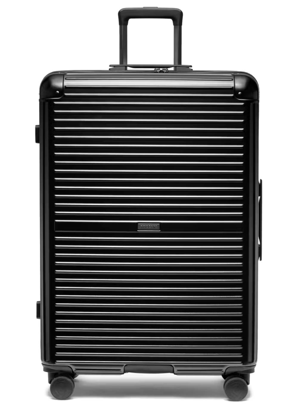 Korpus walizki wykonano z wytrzymałego poliwęglanu, odpornego na zarysowania i uderzenia. Dodatkową ochronę zapewniają aluminiowe narożniki, które nie tylko wzmacniają konstrukcję, ale także dodają walizce prestiżowego wyglądu.