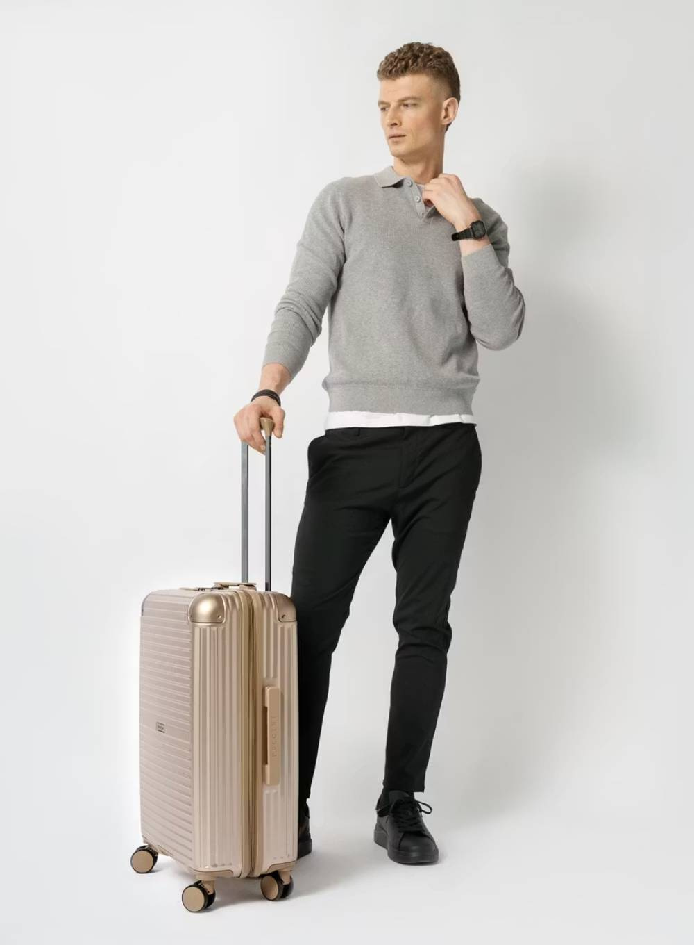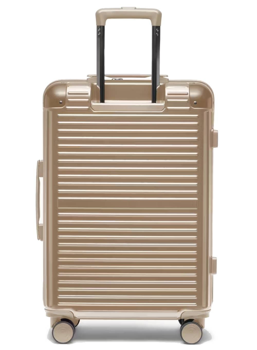 Korpus walizki wykonany został z wysokiej jakości poliwęglanu, który zapewnia wyjątkową odporność na uszkodzenia mechaniczne. Błyszcząca, ryflowana powierzchnia nadaje walizce prestiżowego wyglądu, a wzmocnione aluminiowe narożniki nie tylko chronią newralgiczne punkty, ale również podkreślają jej profesjonalny charakter.