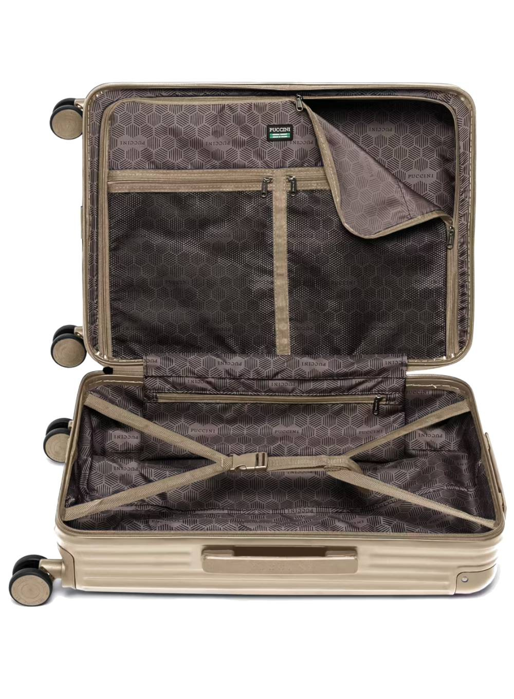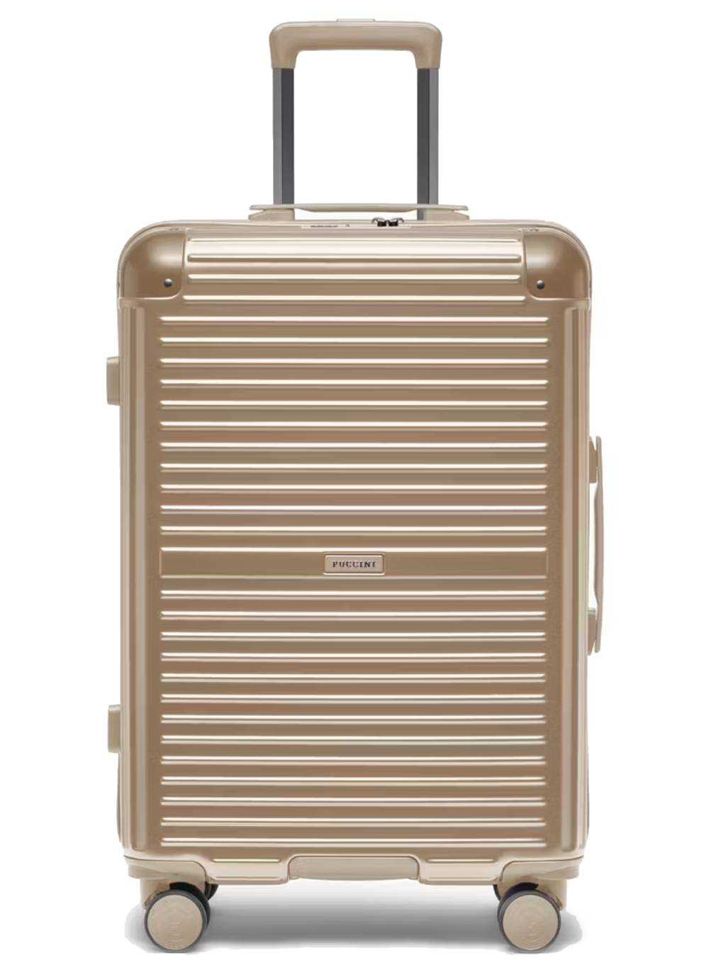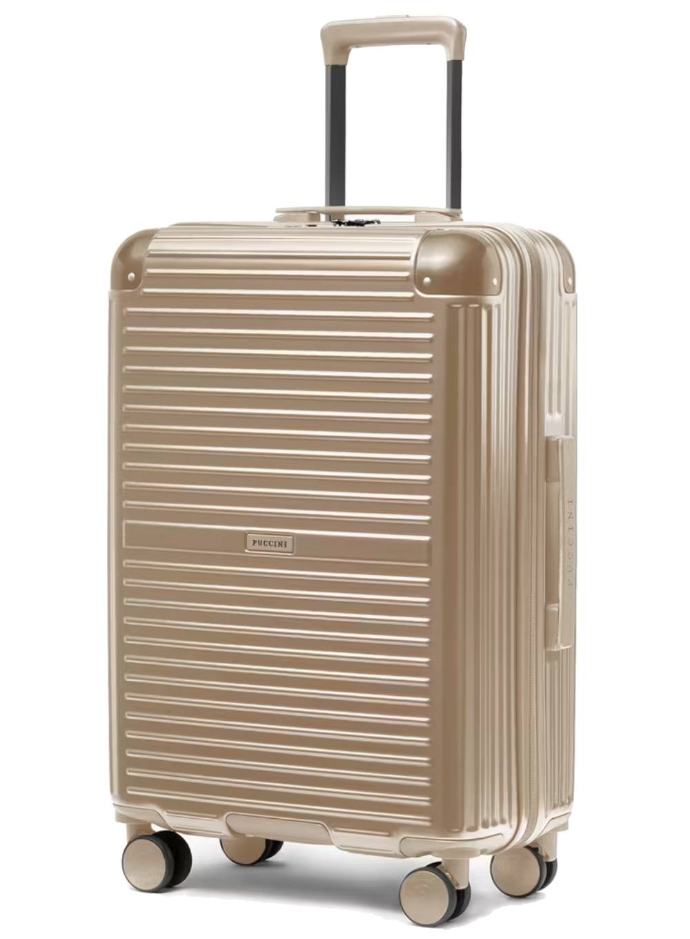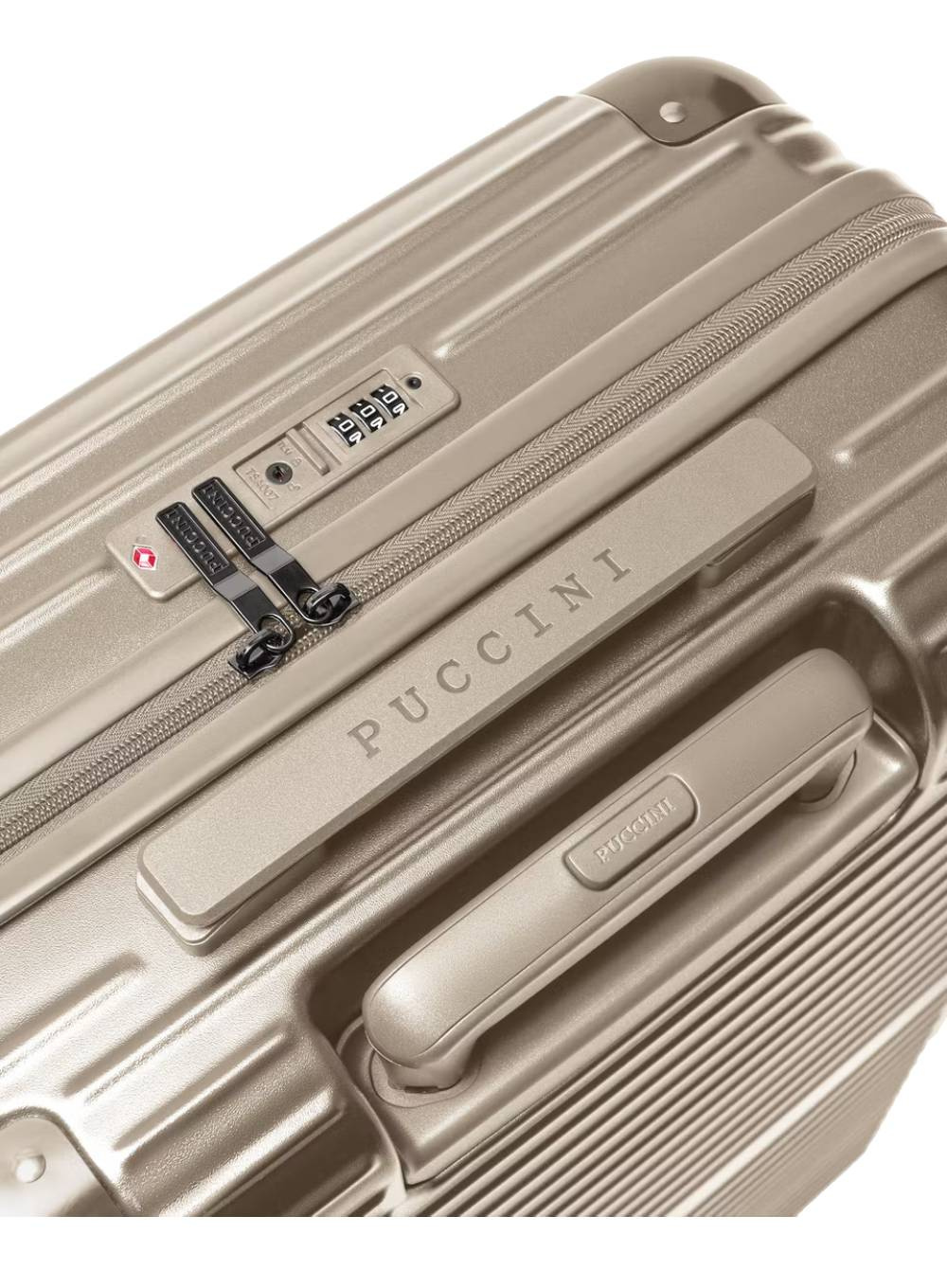 Zamek szyfrowy TSA to rozwiązanie, które zwiększa bezpieczeństwo bagażu podczas kontroli granicznych, umożliwiając służbom celnym otwarcie walizki bez jej uszkadzania. Subtelne logo PUCCINI na froncie dopełnia eleganckiego charakteru tej walizki.