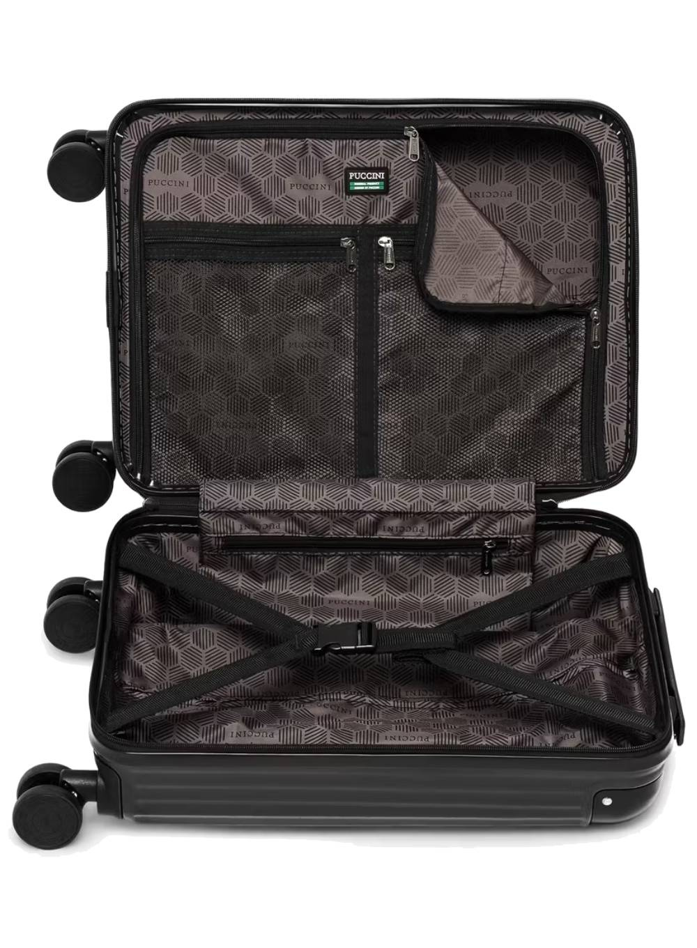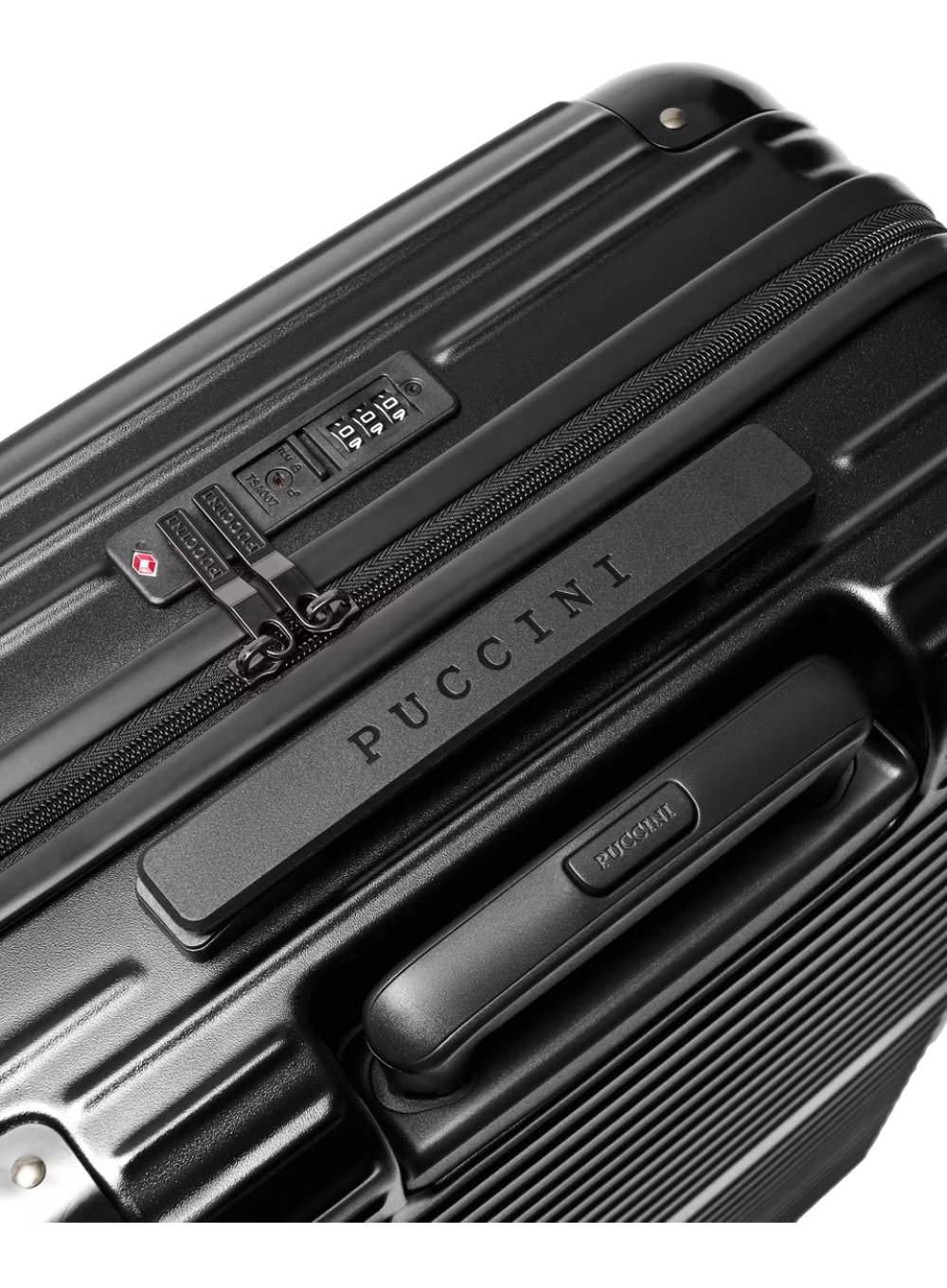 Dla zapewnienia bezpieczeństwa bagażu podczas podróży zastosowano zamek szyfrowy TSA, który umożliwia służbom celnym otwarcie walizki bez jej uszkadzania. Eleganckie logo PUCCINI umieszczone na froncie podkreśla prestiżowy charakter produktu.