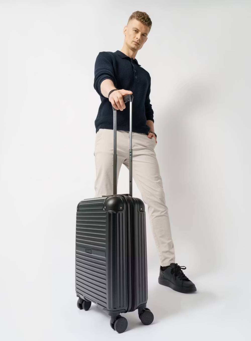 Walizka kabinowa PUCCINI Dallas została zaprojektowana z myślą o osobach, które cenią sobie styl, trwałość i wygodę podczas podróży. Jej ponadczasowy wygląd, podkreślony błyszczącą ryflowaną powierzchnią oraz aluminiowymi narożnikami, wyróżnia ją na tle klasycznych modeli bagażowych.