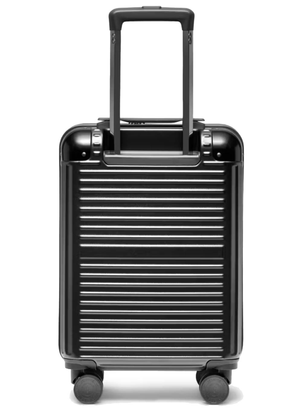 Walizka porusza się lekko i stabilnie dzięki czterem podwójnym kółkom obracającym się o 360 stopni. Teleskopowy, aluminiowy stelaż pozwala na wygodne dostosowanie wysokości rączki, a uchwyt umieszczony u góry ułatwia jej przenoszenie. Walizka posiada kompaktowe wymiary, które spełniają wymagania większości przewoźników, w tym Ryanair, WizzAir i LOT.