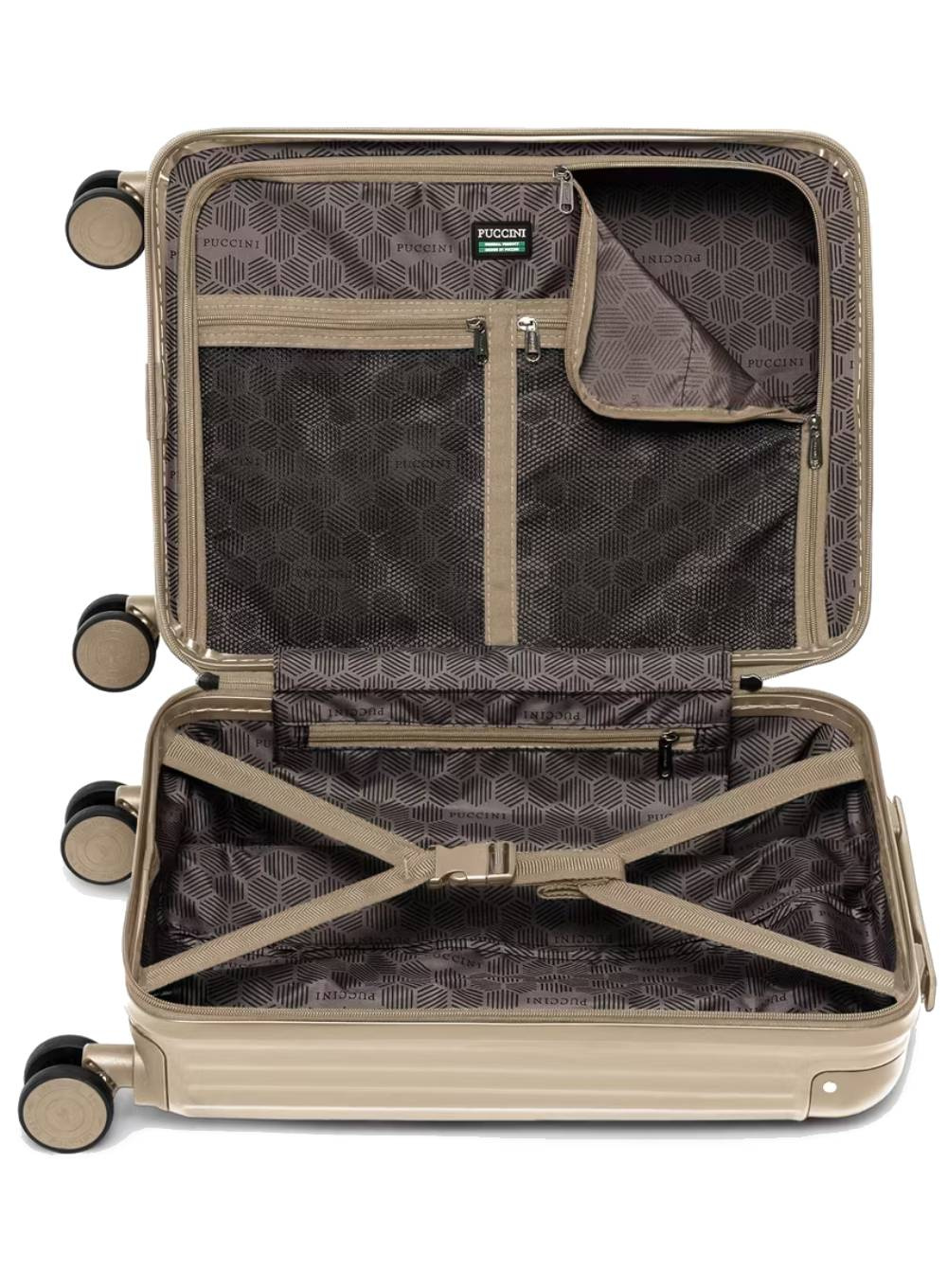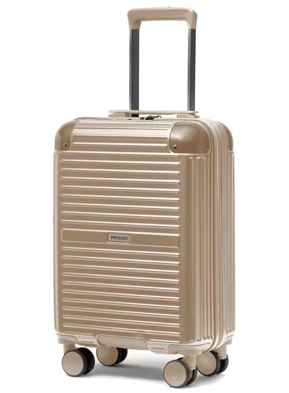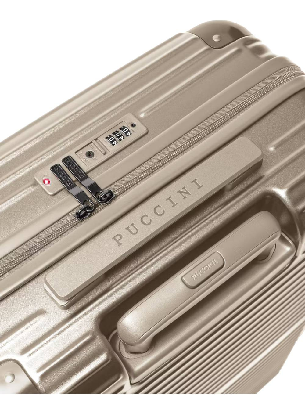 Dla zapewnienia bezpieczeństwa bagażu podczas podróży zastosowano zamek szyfrowy TSA, który umożliwia służbom celnym otwarcie walizki bez jej uszkadzania. Eleganckie logo PUCCINI umieszczone na froncie podkreśla prestiżowy charakter produktu.