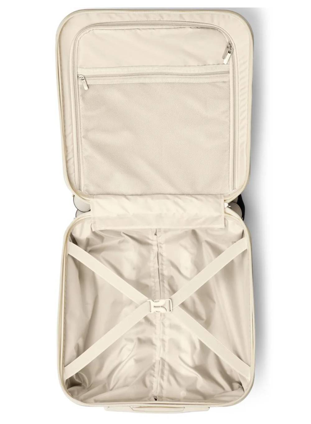Wyposażona w wewnętrzną przegrodę na zamek oraz elastyczne pasy mocujące, ułatwia organizację zawartości i zapobiega jej przemieszczaniu się w trakcie podróży. Wnętrze zostało wykończone gładką podszewką z poliestru, nadając walizce elegancki wygląd. Zamek szyfrowy TSA zapewnia dodatkowe bezpieczeństwo bagażu.