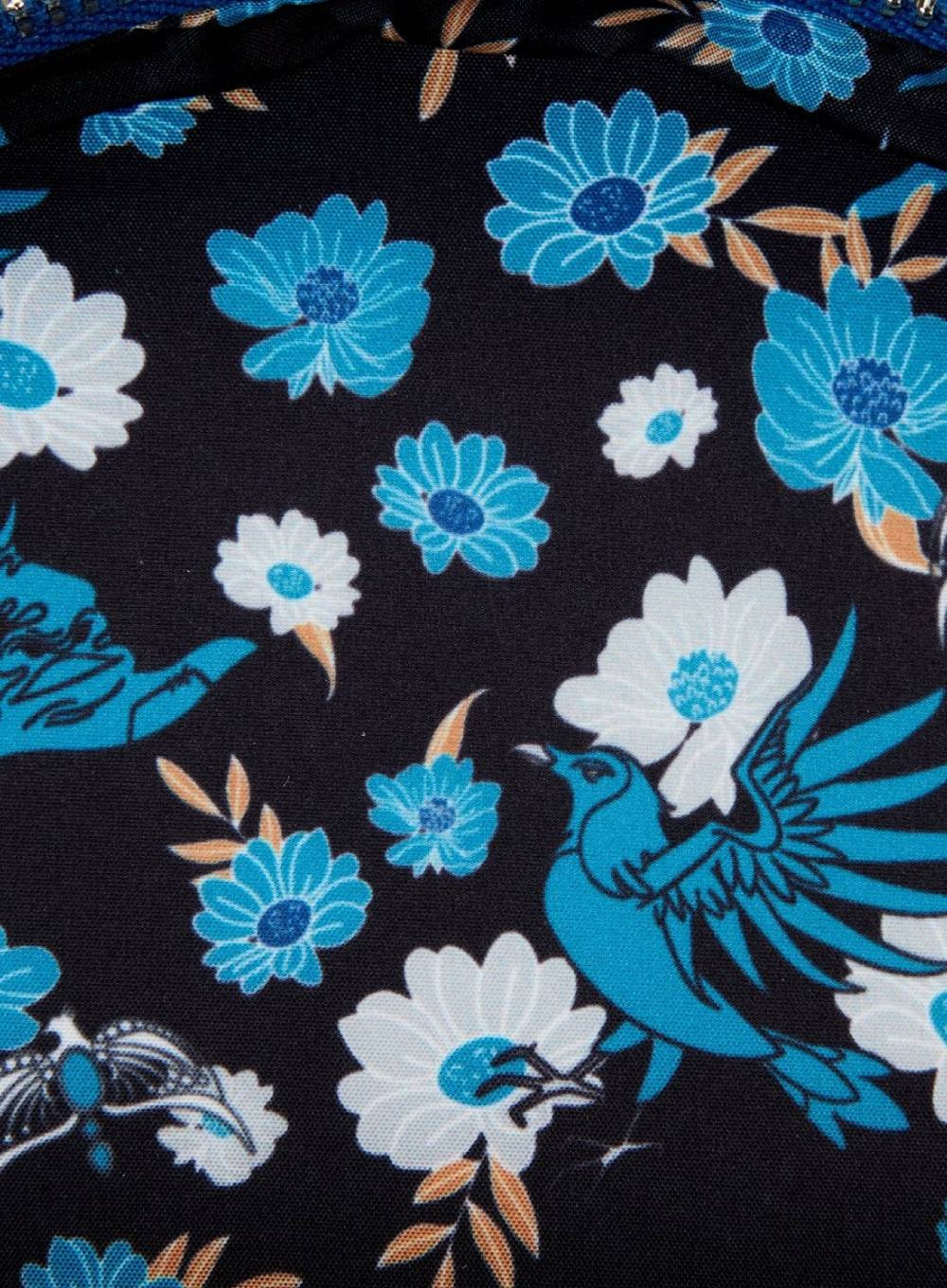 Mini plecak Loungefly x Harry Potter - Ravenclaw House Tattoo to elegancki dodatek dla każdego fana Domu Ravenclaw. Subtelny, kwiatowy motyw i symbole domu podkreślają jego wyjątkowy charakter.