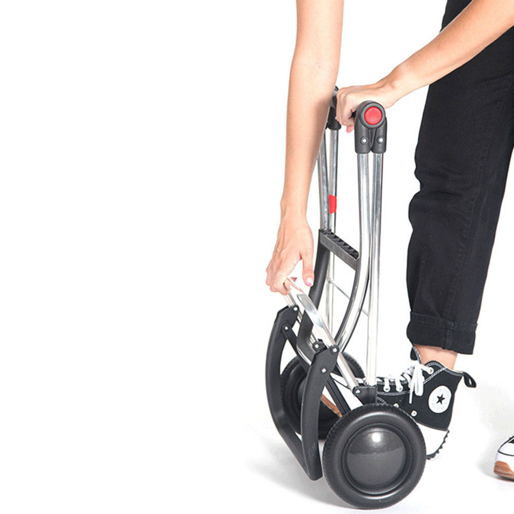 • Poręczny uchwyt pozwala nieść złożony wózek w ręce, w drodze na zakupy, a w trakcie zakupów nie musisz nosić wózka w ręku, dzięki innowacyjnemu zaczepowi (adapterowi) zaczepisz go o wózek marketowy