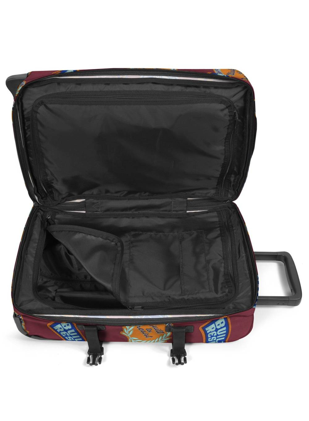 Eastpak Tranverz S to bardzo wysokiej jakości mała torba podróżna na kółkach. Wykonana z wytrzymałych komponentów, na które producent oferuje aż 30 lat gwarancji. Dwa swobodnie kręcące się kółka zostały wykonane całkowicie z kauczuku, który świetnie amortyzuje wstrząsy. Dodatkowo kółka wzmocnione są metalowym łożyskiem. Wnętrze zostało podzielone na 2 części, ułatwiające organizację bagażu.