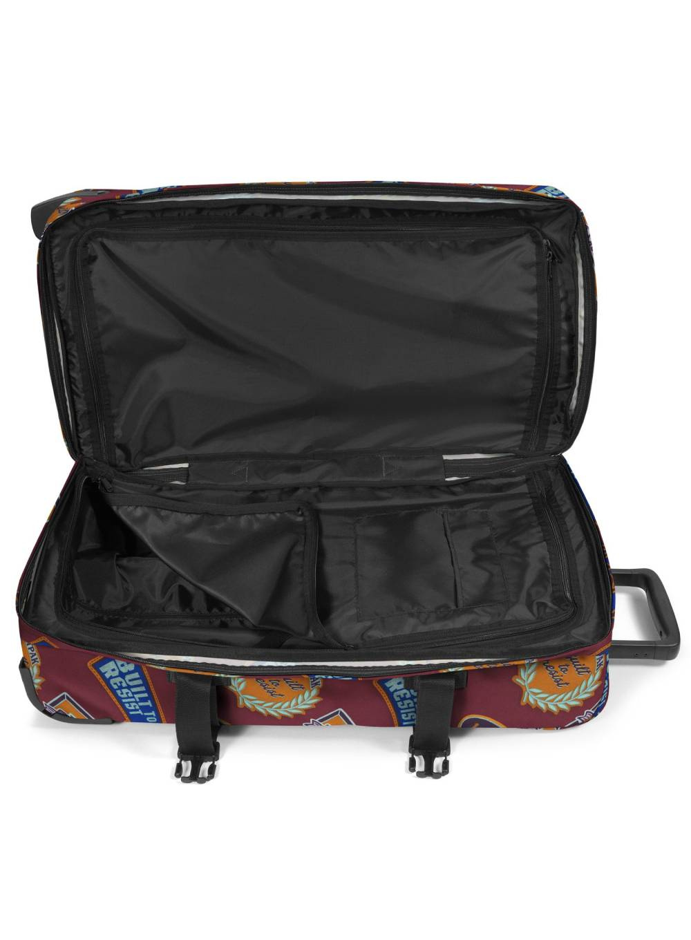 Eastpak Tranverz M to bardzo wysokiej jakości pojemna torba podróżna na kółkach. Wykonana z wytrzymałych komponentów, na które producent oferuje aż 30 lat gwarancji. Dwa swobodnie kręcące się kółka zostały wykonane całkowicie z kauczuku, który świetnie amortyzuje wstrząsy. Dodatkowo kółka wzmocnione są metalowym łożyskiem. Wnętrze zostało podzielone na 2 części, ułatwiające organizację bagażu.