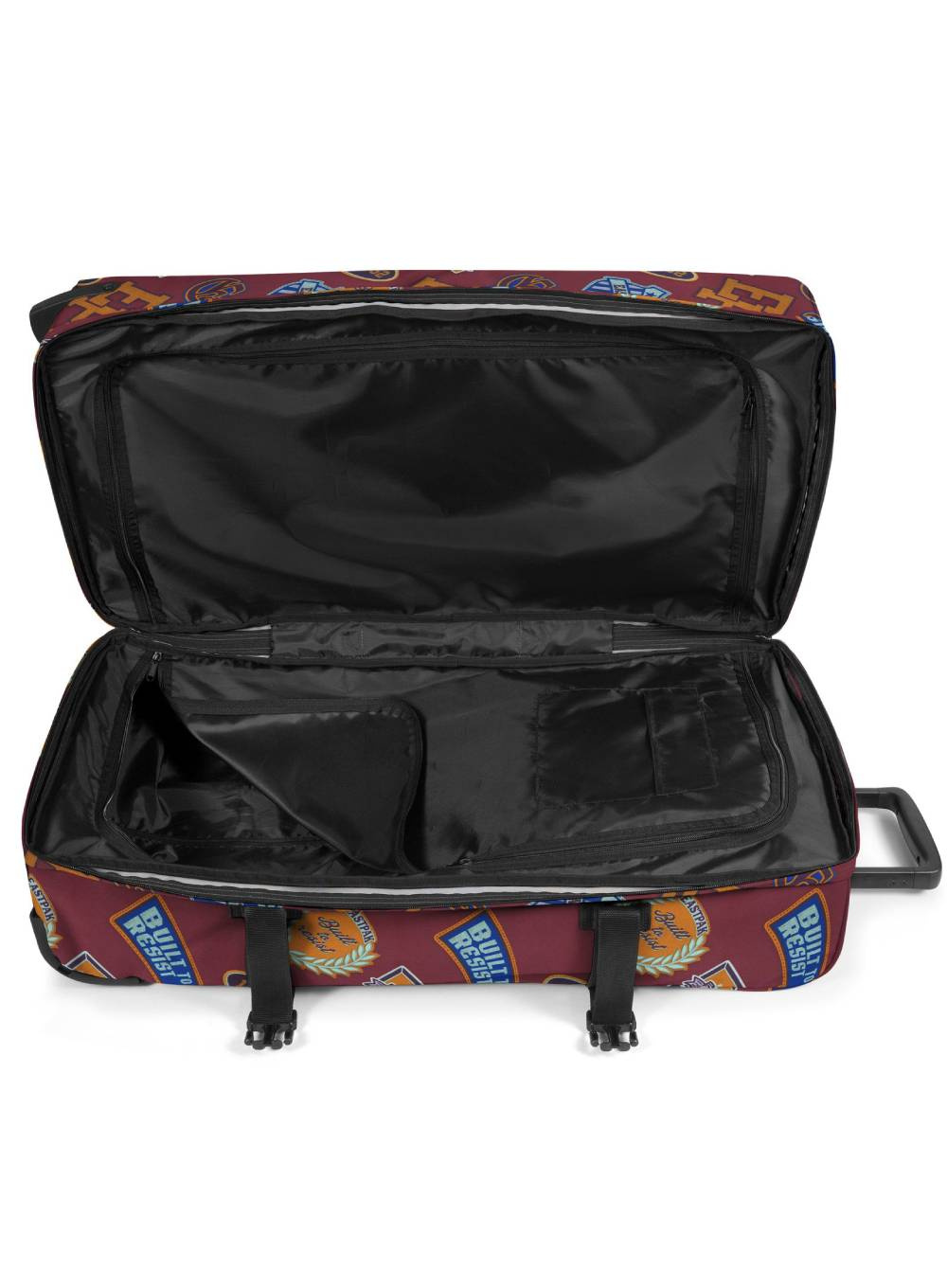 Eastpak Tranverz L to bardzo wysokiej jakości pojemna torba podróżna na kółkach. Wykonana z wytrzymałych komponentów, na które producent oferuje aż 30 lat gwarancji. Dwa swobodnie kręcące się kółka zostały wykonane całkowicie z kauczuku, który świetnie amortyzuje wstrząsy. Dodatkowo kółka wzmocnione są metalowym łożyskiem.