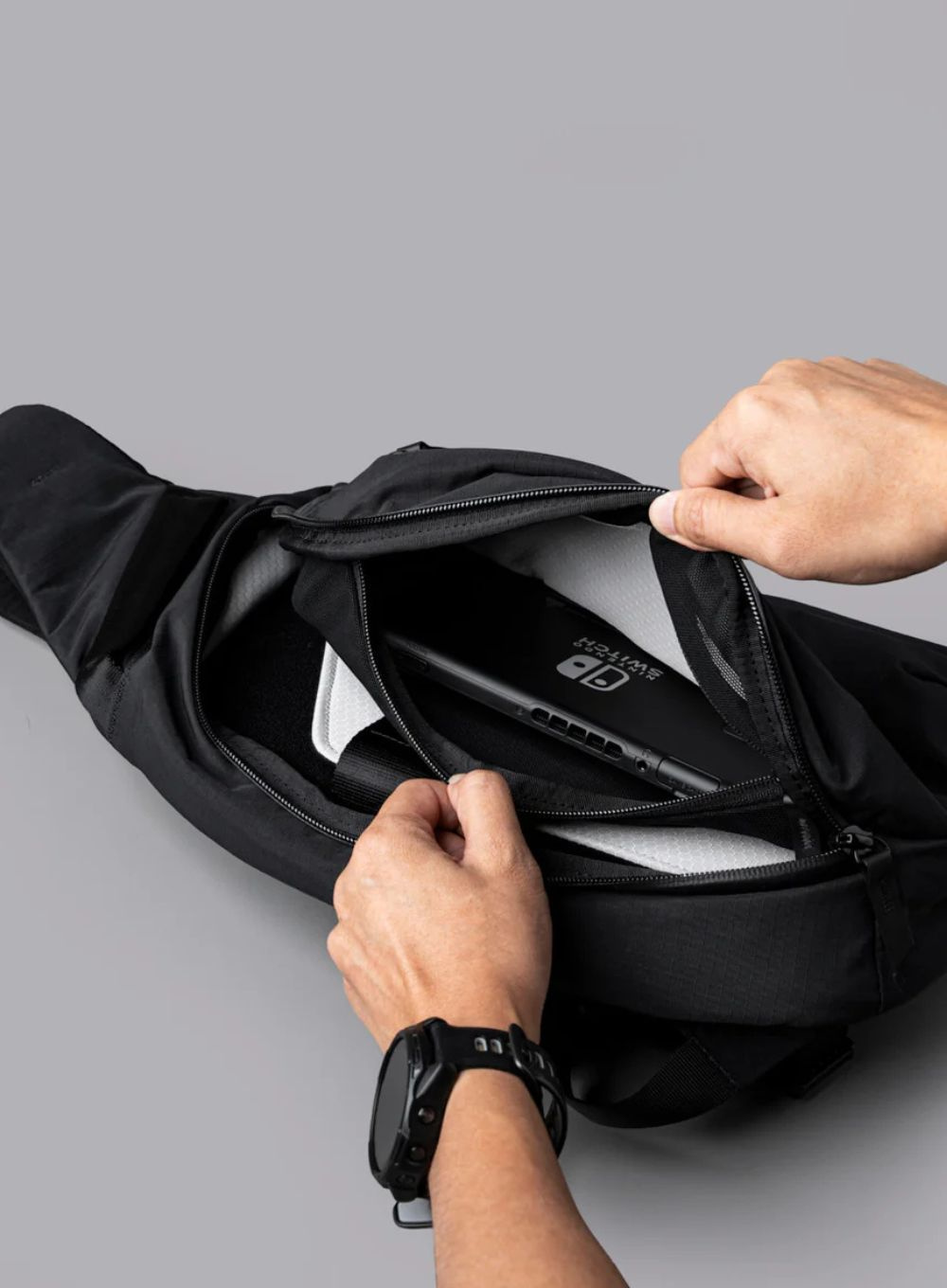 Zintegrowana kieszeń na telefon w pasku, dyskretna kieszeń na wartościowe przedmioty oraz rozszerzalny uchwyt na butelkę sprawiają, że wszystkie niezbędne rzeczy masz zawsze pod ręką - dobrze zorganizowane i bezpieczne. Przednia kieszeń z szybkim dostępem, wewnętrzna kieszeń z siatki na suwak i przestronna komora główna zapewniają łatwą organizację codziennego ekwipunku.