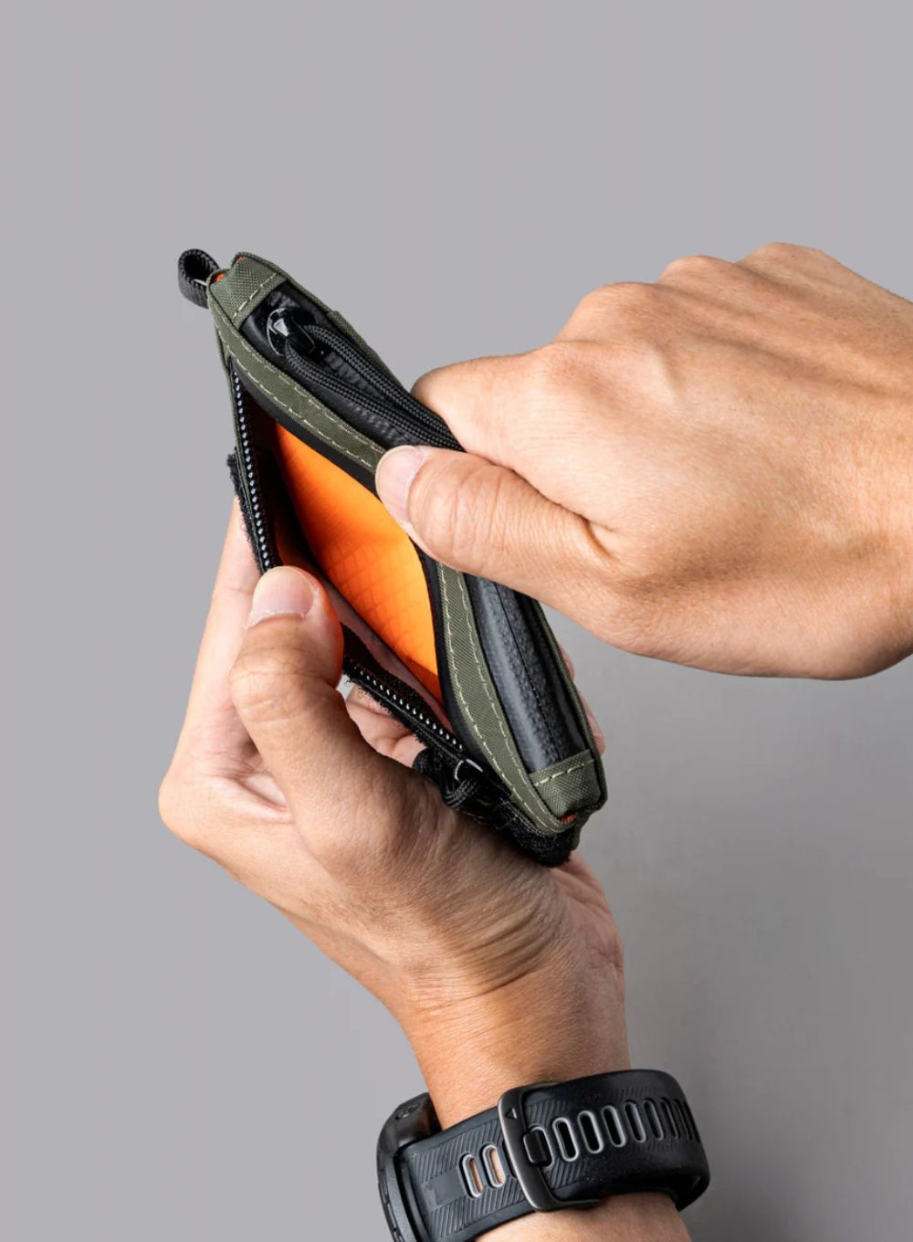Wnętrze pomieści od 4 do 12 kart oraz gotówkę, a dodatkowa kieszeń na zamek świetnie sprawdzi się do przechowywania monet lub drobiazgów. Trzy zewnętrzne kieszenie typu "slip" zapewniają błyskawiczny dostęp do takich przedmiotów jak multitool, latarka czy zapalniczka.