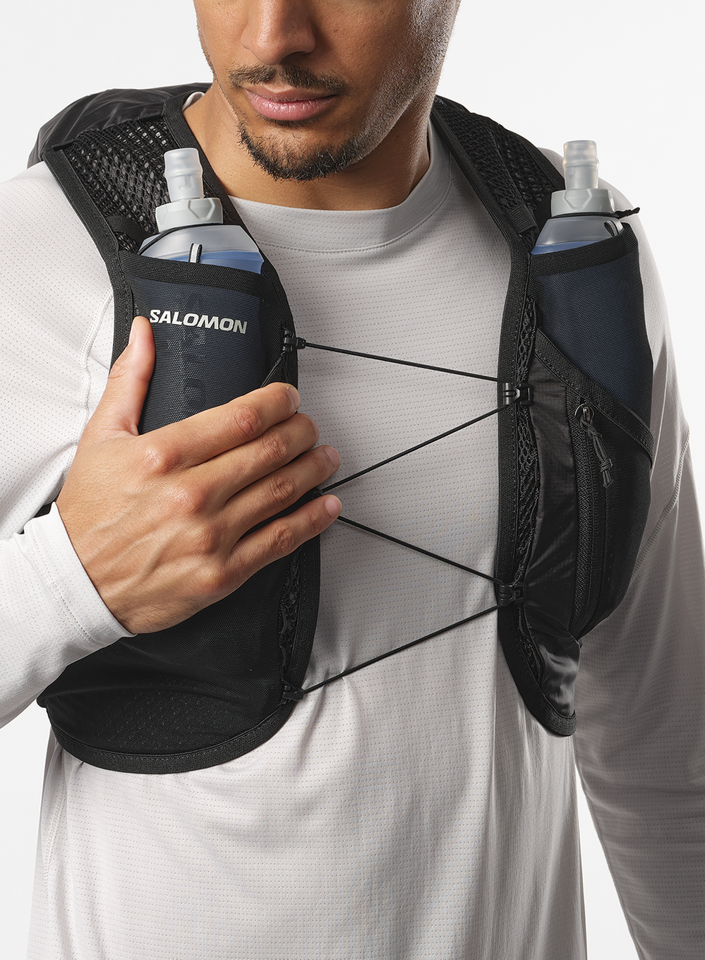Kamizelka unisex z bidonami Salomon ACTIVE SKIN 8 zapewnia idealne nawodnienie w czasie biegania i innych aktywności sportowych. Wygodna kamizelka sportowa z systemem SensiFit™ została opracowane z użyciem miękkich materiałów i wewnętrznej siateczki dla optymalnego komfortu, a system regulacji utrzymuje kamizelkę dokładnie tam, gdzie chcesz.