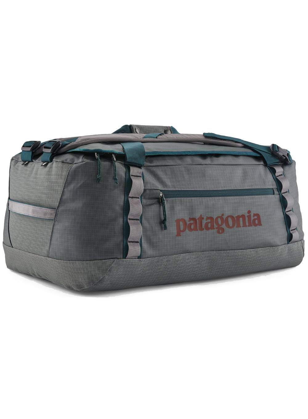 Torba podróżna 2w1 Patagonia Black Hole Duffel 55 l jest wykonana z odpornego na warunki atmosferyczne i ścieranie materiału ripstop, pochodzącego w 100% z poliestru pochodzącego z recyklingu, z matowym laminatem z folii TPU pochodzącej z recyklingu postindustrialnego