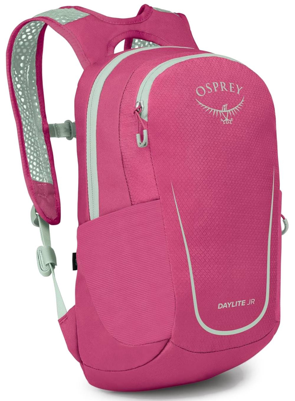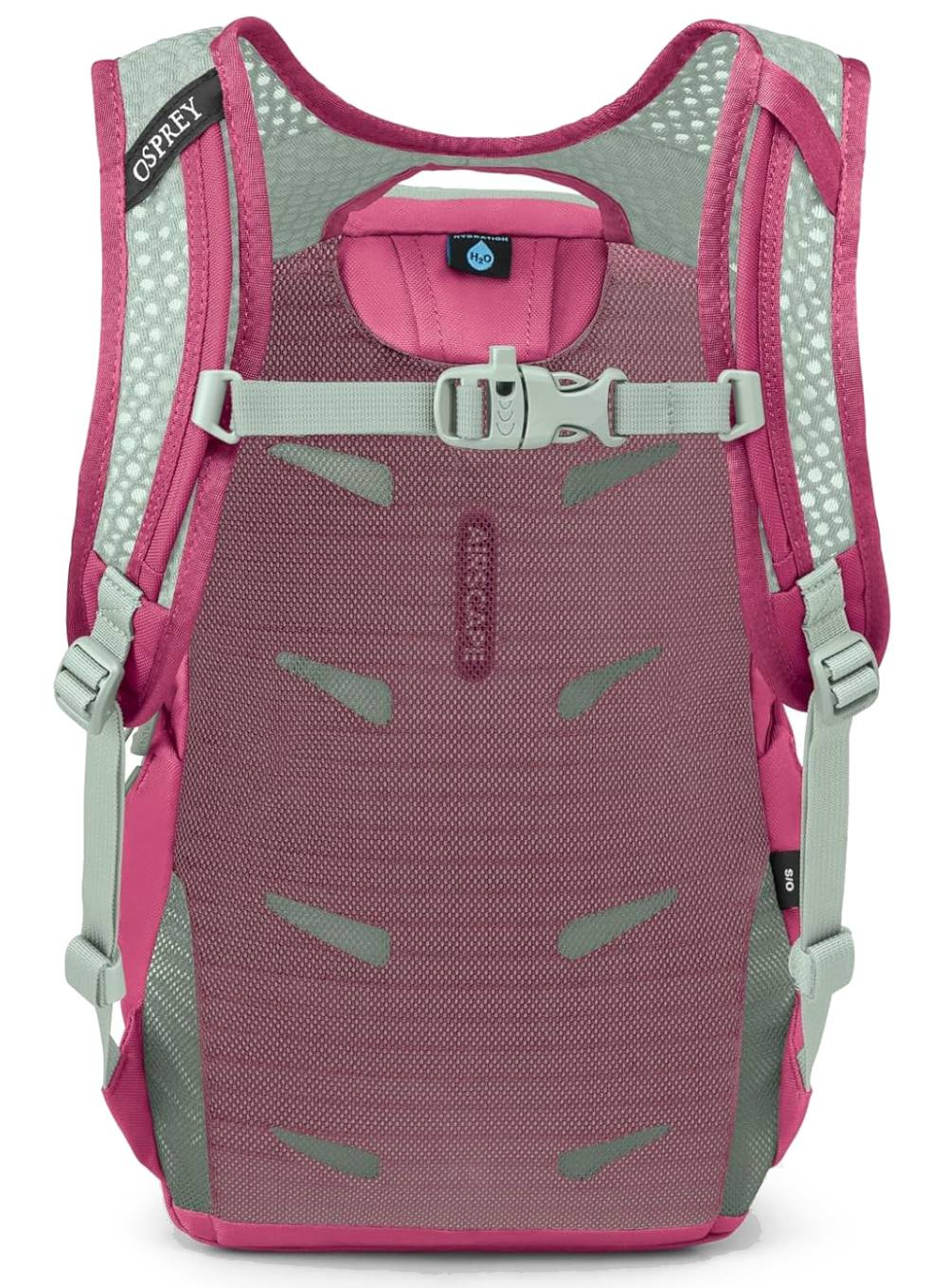 Dziecięcy plecak Osprey Daylite™ Jr oferuje prosty zestaw funkcji w małym opakowaniu, w tym wentylowany panel tylny, podwójne boczne kieszenie z siatki na butelki z wodą lub skarby znalezione na szlaku, kieszeń na bukłak