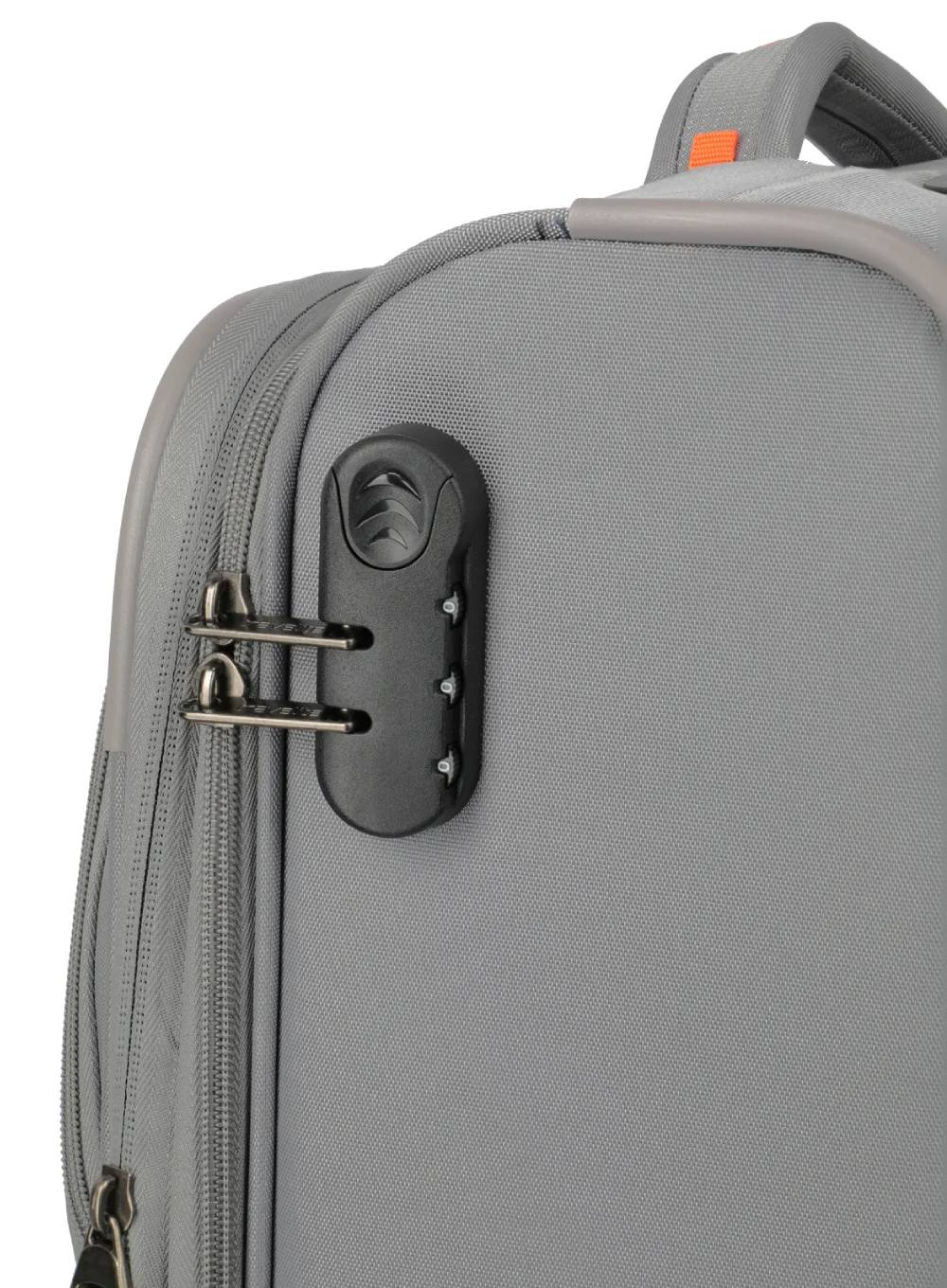 Zintegrowany zamek szyfrowy TSA dba o bezpieczeństwo zawartości, umożliwiając służbom celnym bezinwazyjne otwarcie w razie potrzeby. Cztery podwójne kółka oraz stabilny, blokowany uchwyt teleskopowy zapewniają wygodne prowadzenie walizki w każdych warunkach.