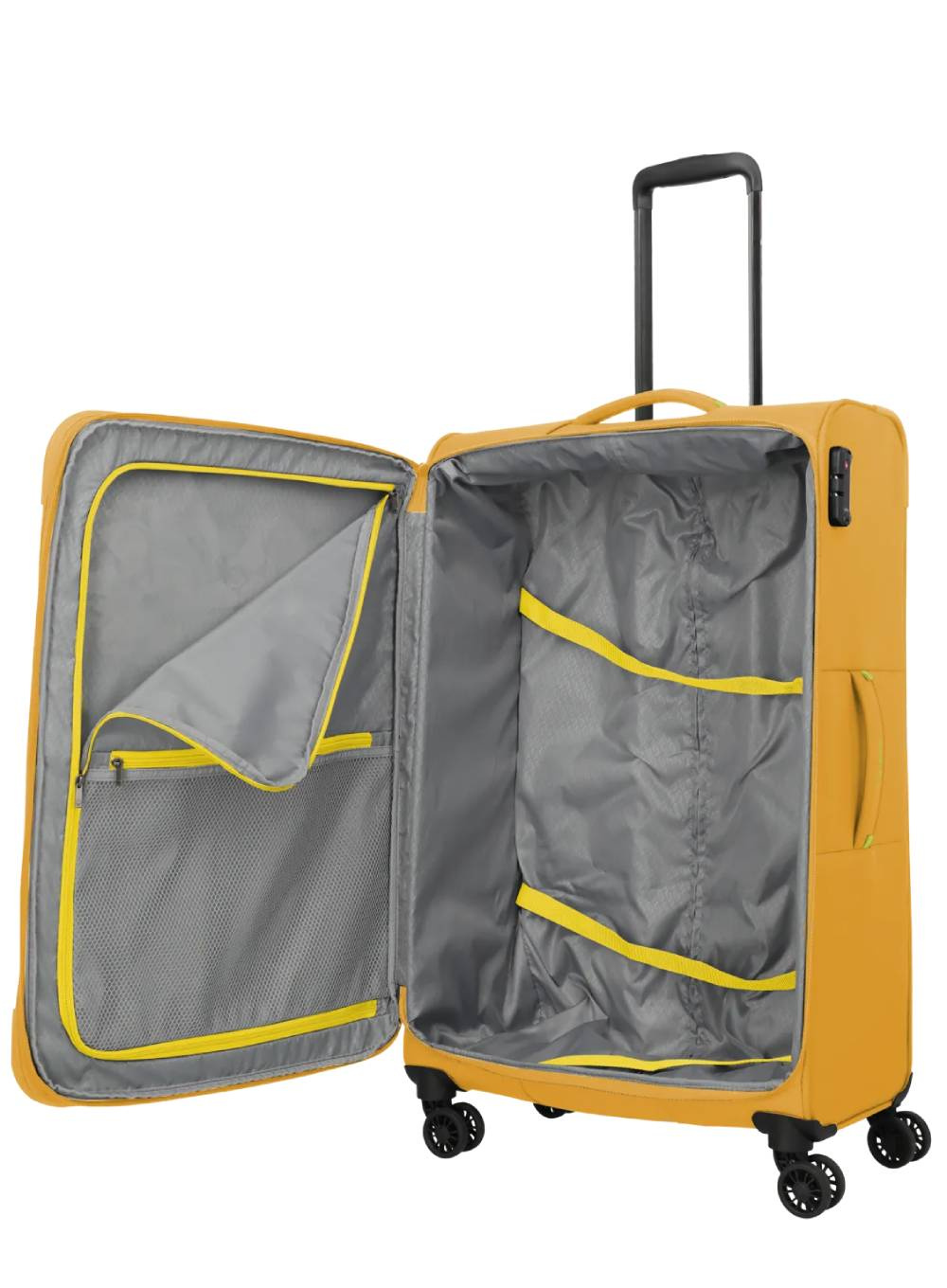 Duża poszerzana walizka Travelite stworzona z myślą o elastyczności, wygodzie i bezpieczeństwie podróży. Łączy nowoczesny, sportowy design z praktycznymi rozwiązaniami, które sprawdzą się zarówno w krótkich, jak i długich wyprawach.