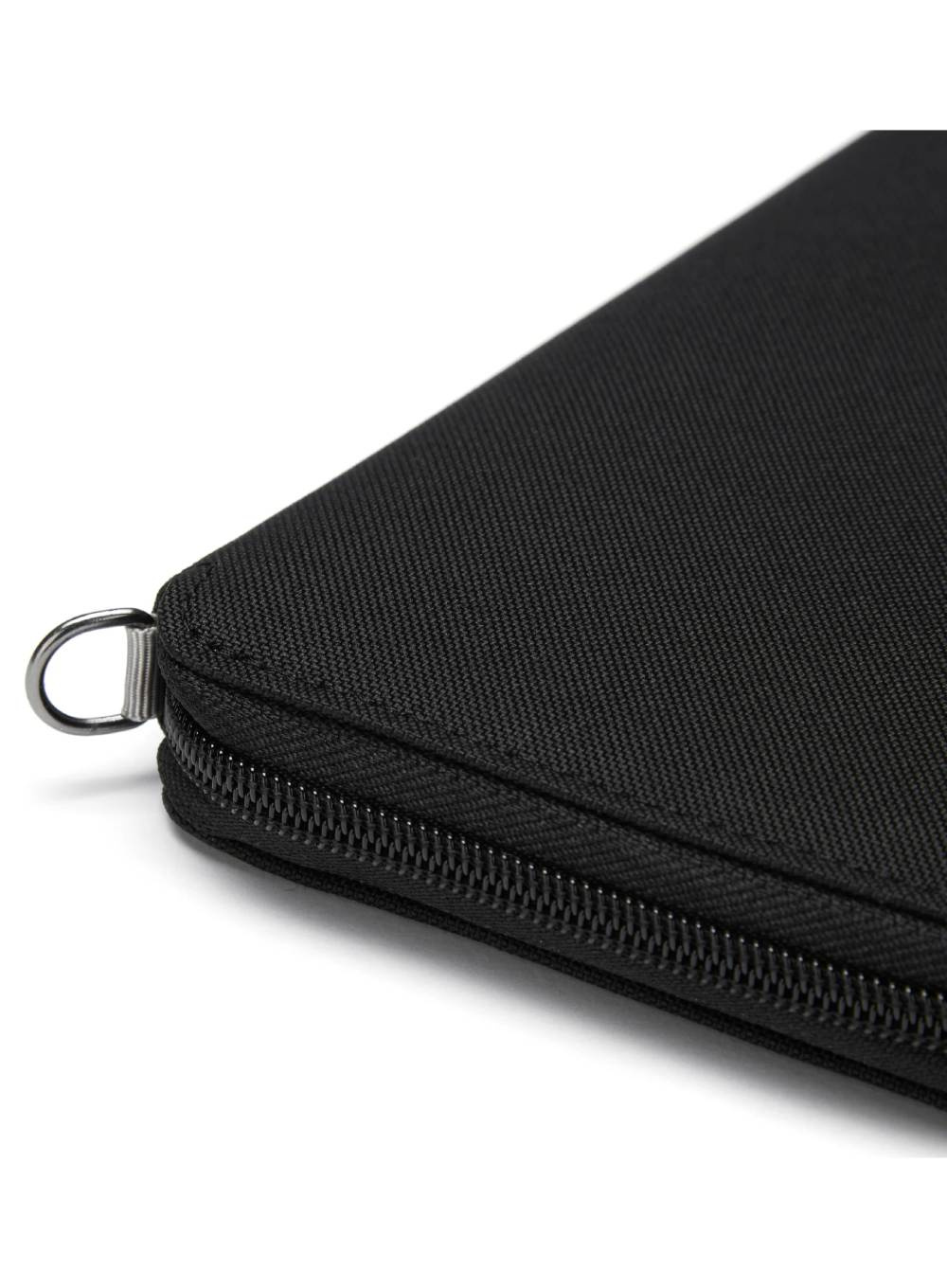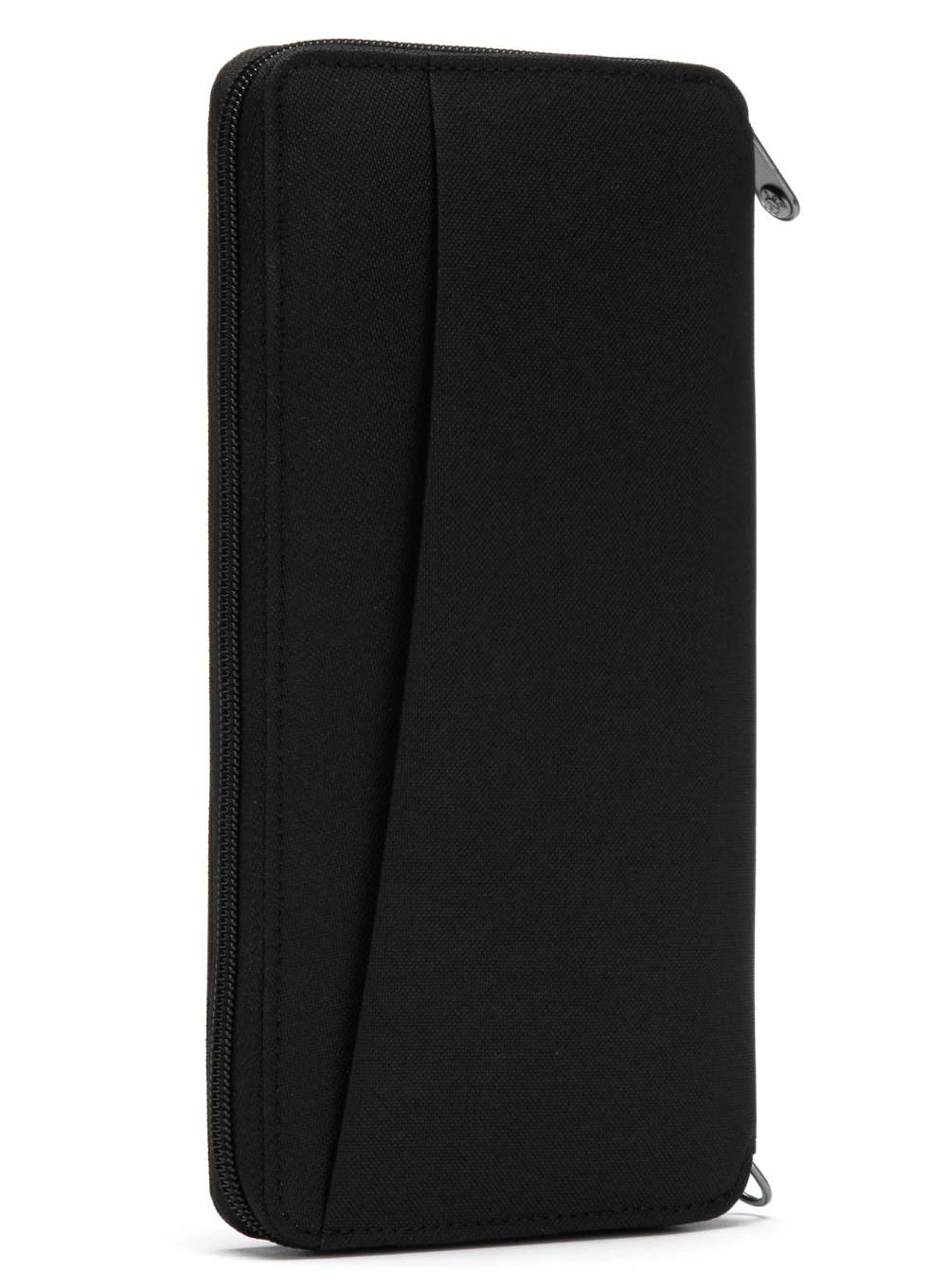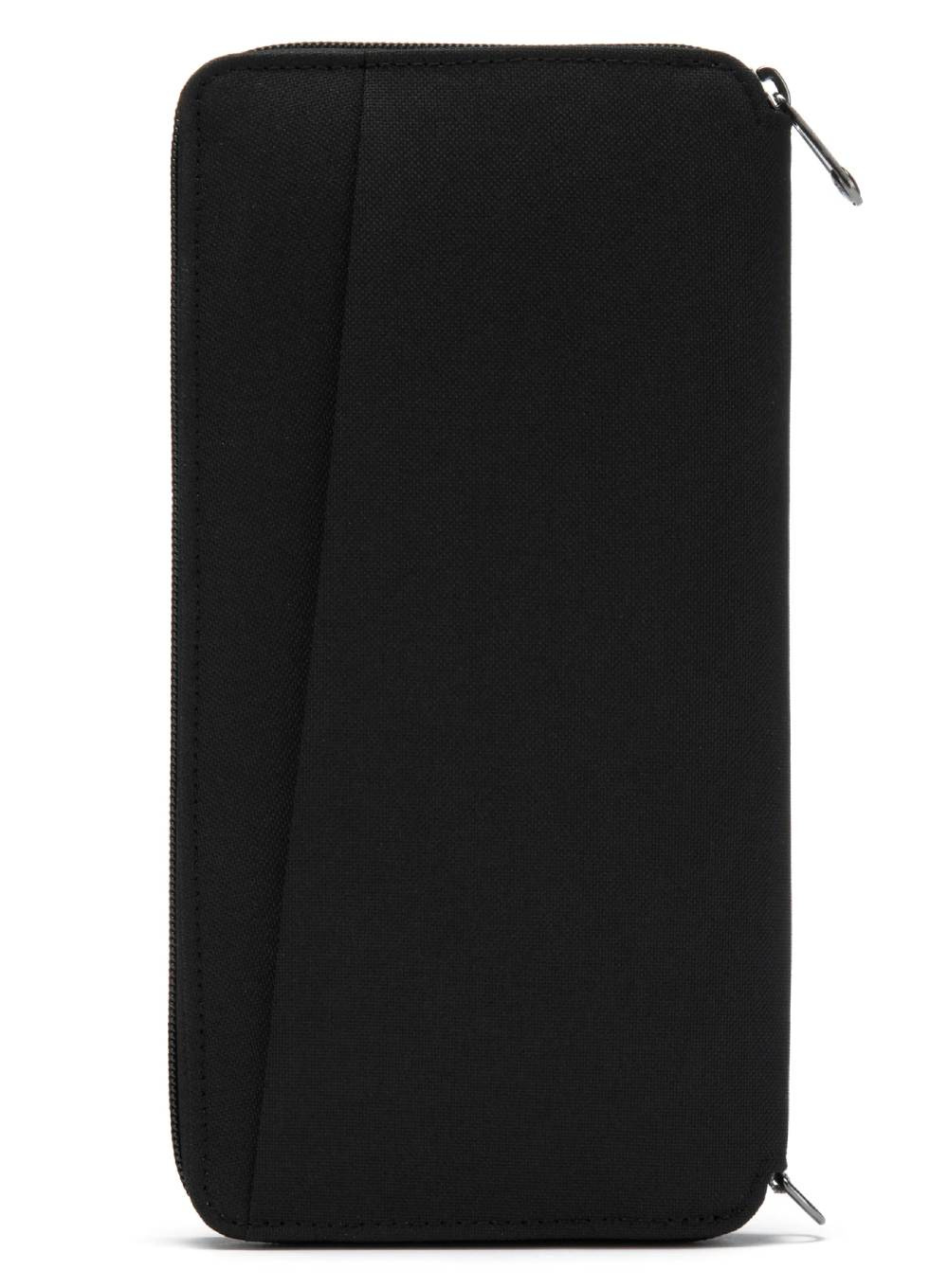 Pacsafe® RFIDsafe™ Travel Wallet to bezpieczny portfel podróżny chroniący dane kart i paszportów dzięki technologii RFID, z miejscem na 2 paszporty, karty, gotówkę i monety.