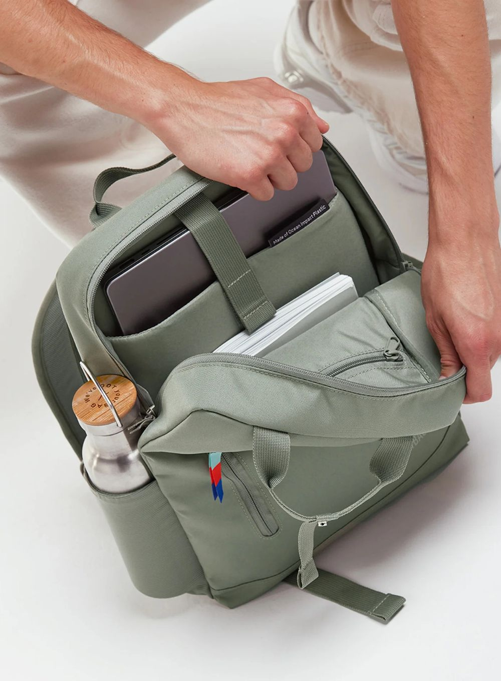 - Materiał główny z recyklingowanego Ocean Impact Plastic, wnętrze z recyklingowanego poliestru, siatka z recyklingu, klamry z POM, taśmy z recyklingowanego PET, zamki z recyklingowanego nylonu