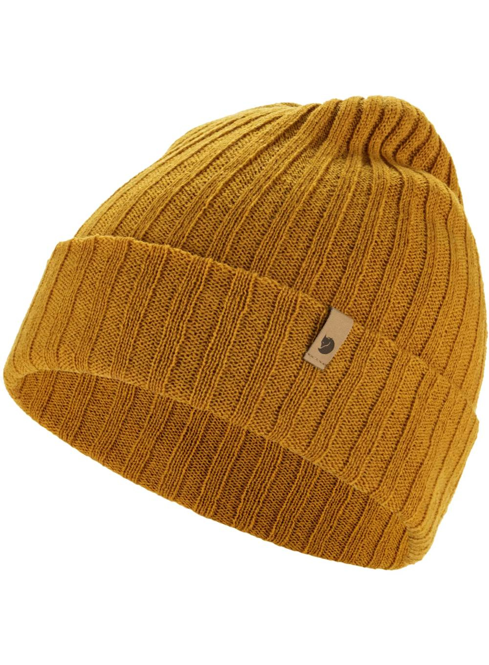 Lekka i ciepła czapka z dzianiny o prążkowanej fakturze z owczej wełny Fjallraven Byron Hat Thin to cieńsza wersja popularnej czapki Byron Hat. Z boku małe skórzane logo.
