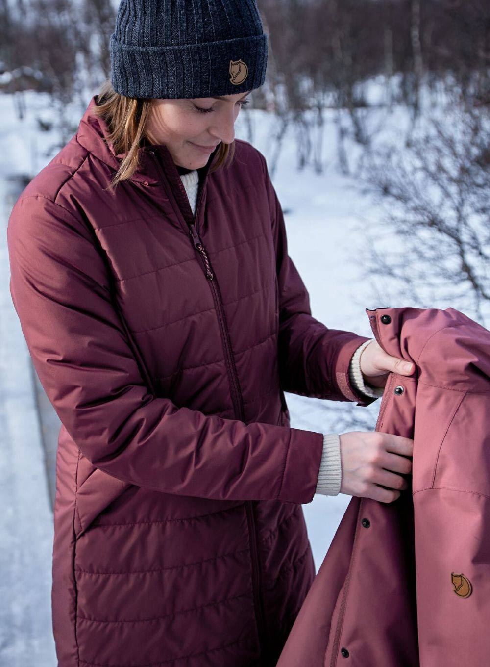Fjallraven Byron Hat to czapka z podwójnej dzianiny z wełny, która jest wytrzymała i doskonale chroni głowę przed zimnem. Ma wywijany podwójny mankiet na dole i ściągacz dla wygodnego dopasowania. Logo - lis polarny na czole.
