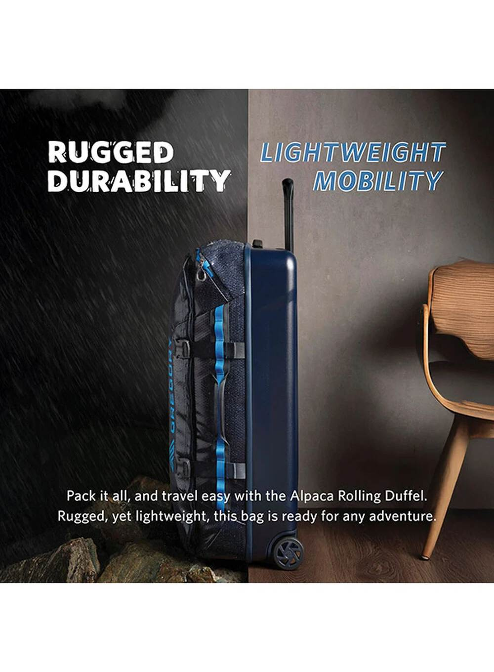 Gregory Alpaca Wheeled Duffle 40 to funkcjonalna torba podróżna stworzona z myślą o wygodzie i trwałości. Hybrydowa konstrukcja z odpornym na uderzenia dnem z poliwęglanu i powłoką TPU chroni zawartość przed uszkodzeniami i wilgocią.