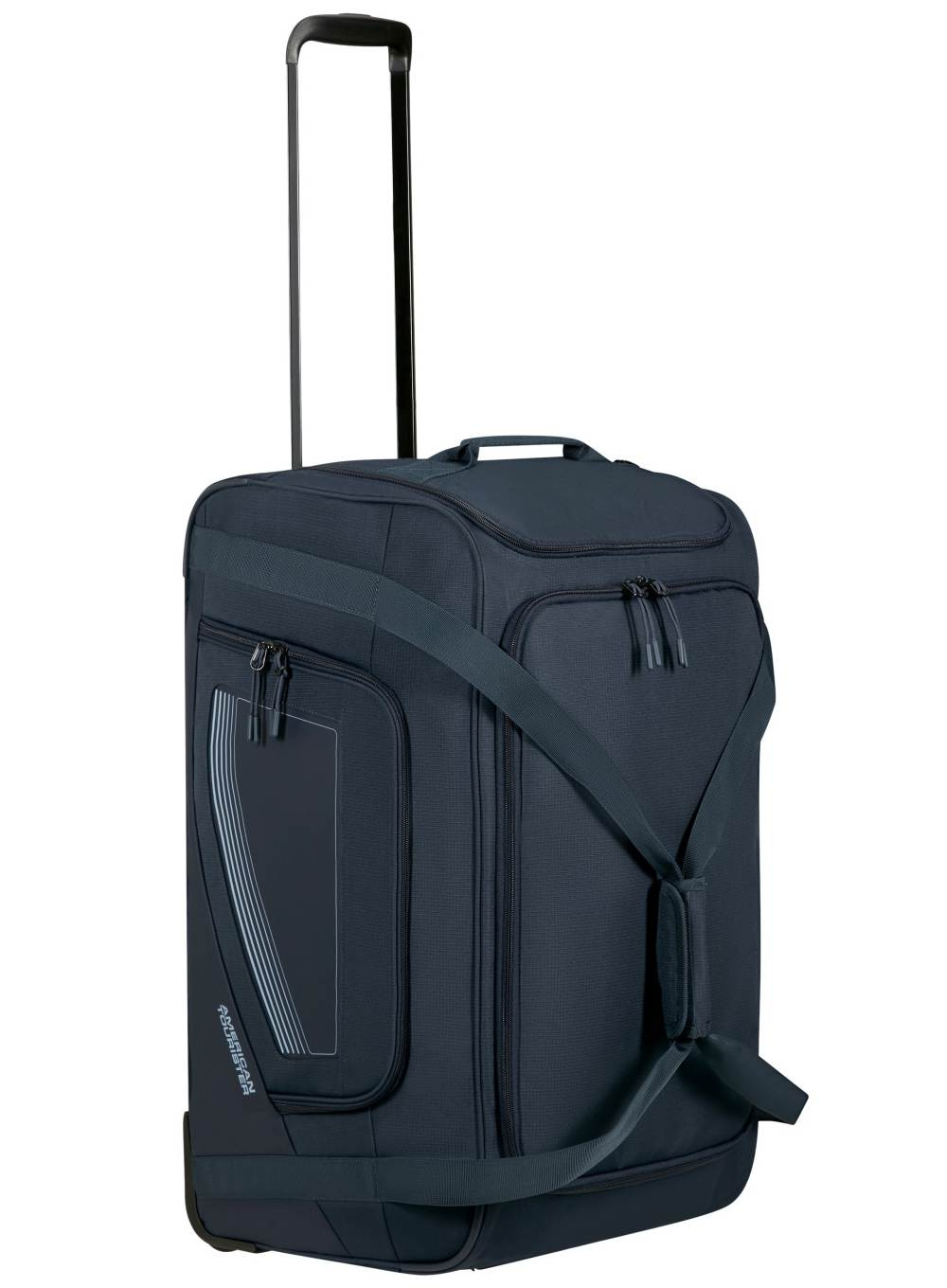 Zintegrowane kółka i podwójna rączka teleskopowa gwarantują komfortowe prowadzenie, a uchwyty umieszczone z góry, z boku i z przodu pozwalają łatwo przenosić torbę w każdych warunkach.