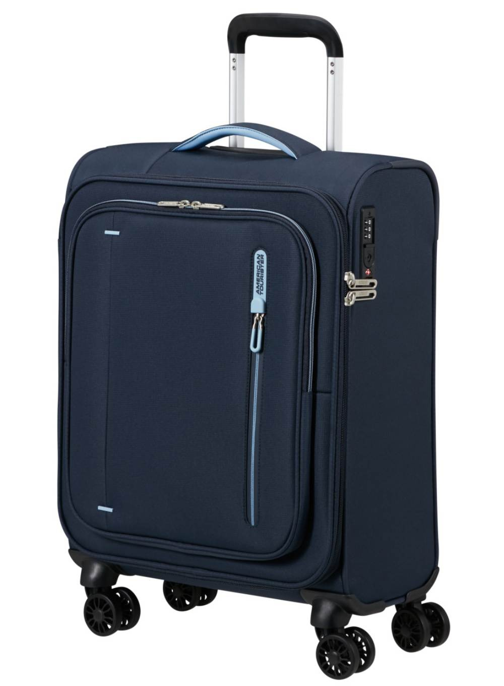 American Tourister Cloudrider S 35L to lekka walizka kabinowa na 4 kółkach, idealna do większości linii lotniczych. Oferuje praktyczną organizację wnętrza, kieszeń frontową i zamek TSA dla bezpieczeństwa bagażu.