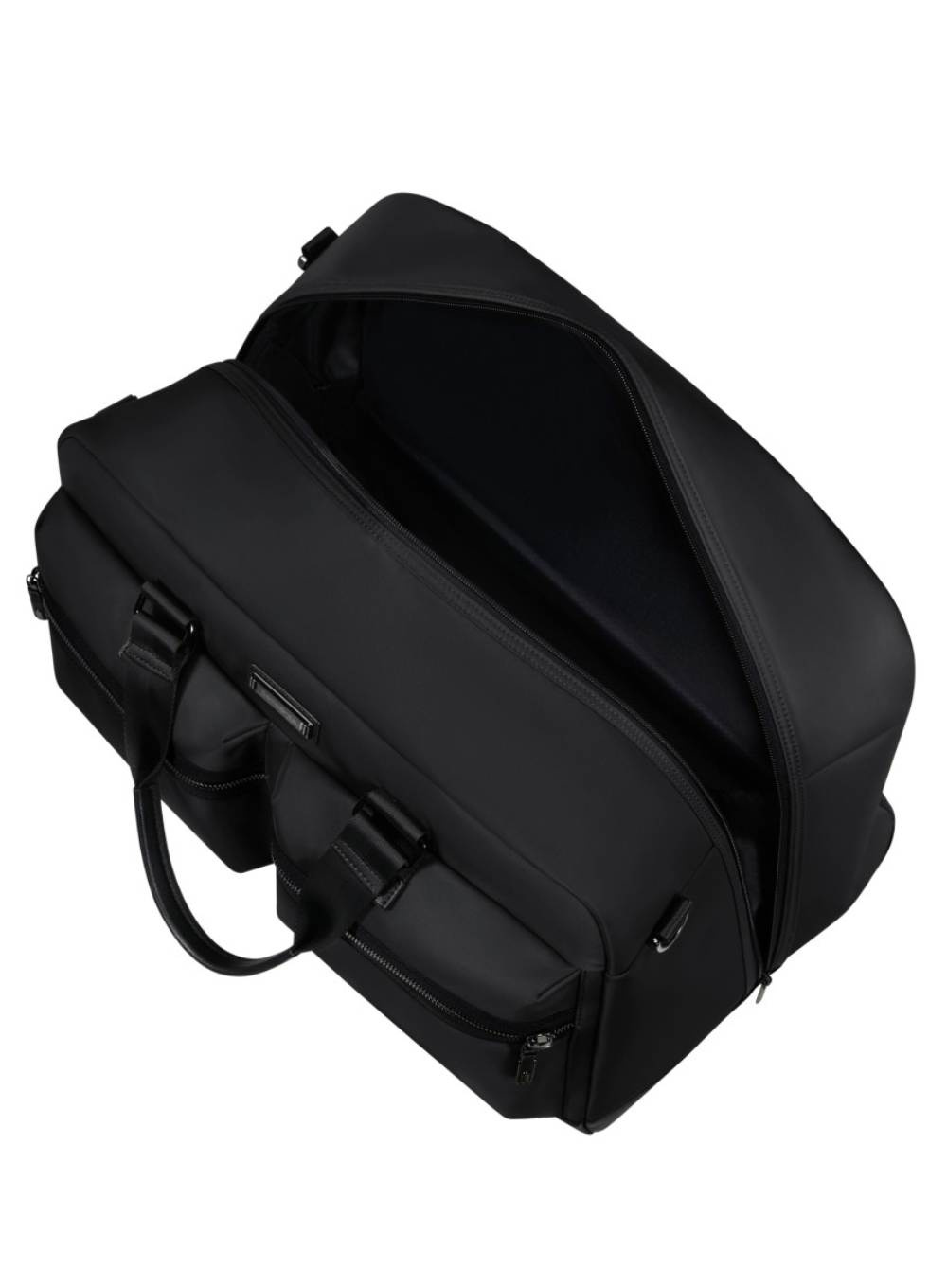 Torbę można nosić w ręce, na ramieniu dzięki regulowanemu paskowi z podkładką, lub przymocować do walizki za pomocą praktycznego uchwytu Smart Sleeve. Spód zabezpieczony metalowymi nitami chroni przed wilgocią i otarciami.