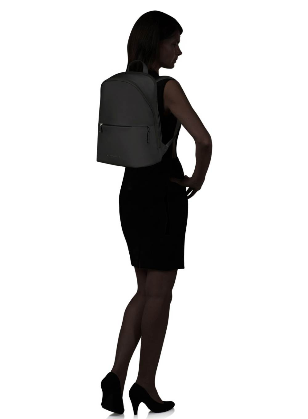 Samsonite 4Pack Backpack Round 14,1" to stylowy damski plecak, który łączy funkcjonalność z ekologiczną produkcją. Wykonany z poliestru z recyklingu (17 butelek PET, wyróżnia się trwałością i hydrofobową tkaniną chroniącą przed wilgocią.