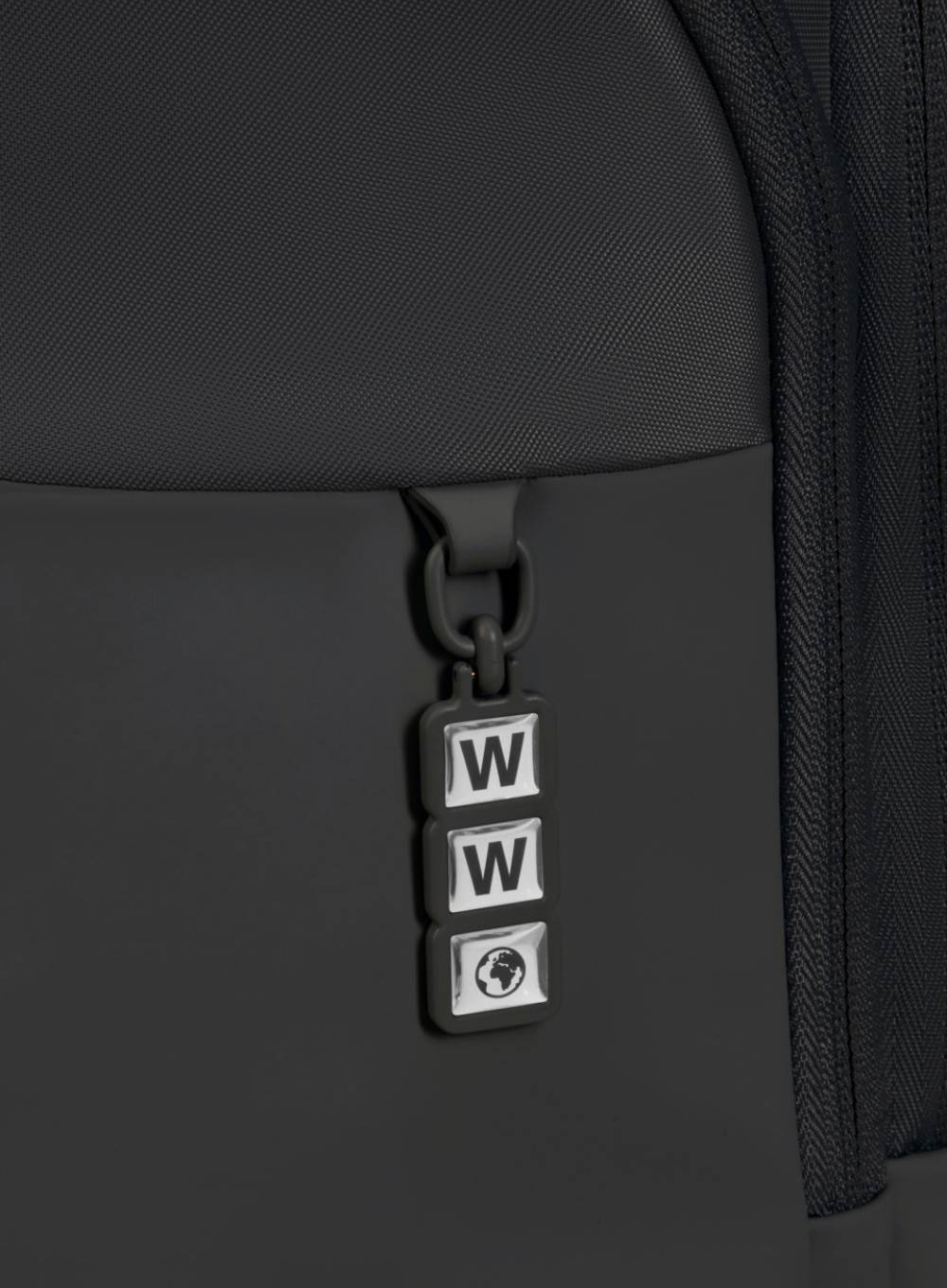 Z zewnątrz posiada kieszeń frontową, ukrytą kieszeń na butelkę oraz sekretną kieszonkę na plecach. Plecak zapewnia wygodę noszenia dzięki regulowanym szelkom z pianki, miękkiemu uchwytowi na górze, wyściełanym plecom oraz uchwytowi Smart Sleeve do mocowania na walizce.