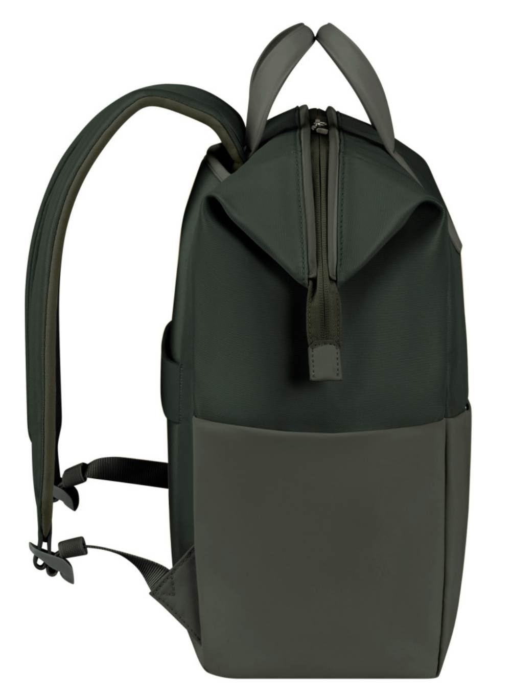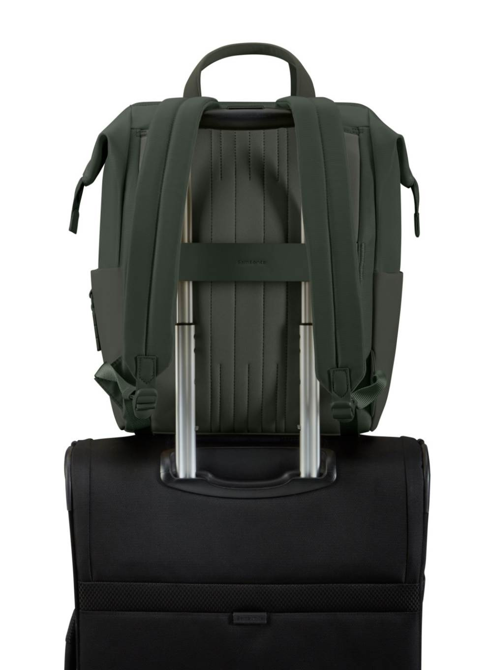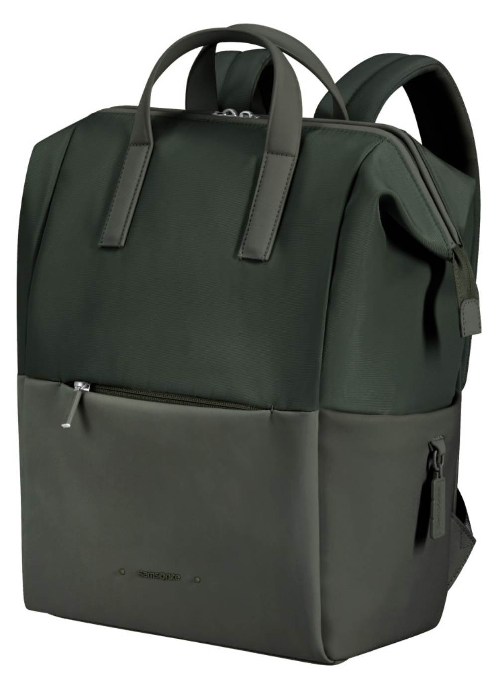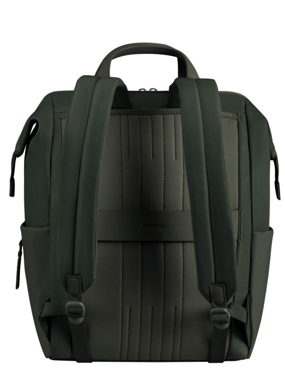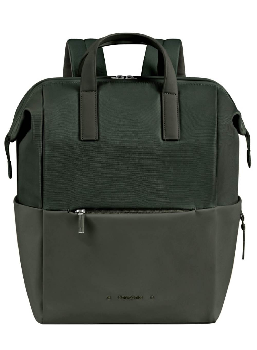 Dzięki szerokiemu otwarciu w metalowej ramie, inspirowanemu klasycznymi torbami lekarskimi, plecak gwarantuje łatwy dostęp do zawartości. Posiada dedykowane, wyściełane kieszenie na laptop 14,1" i tablet 10,5", a także dodatkowe przegródki na telefon, powerbank oraz akcesoria. Z zewnątrz oferuje pojemną kieszeń przednią, dwie otwarte boczne, chowaną kieszeń na butelkę oraz ukryty schowek z tyłu.