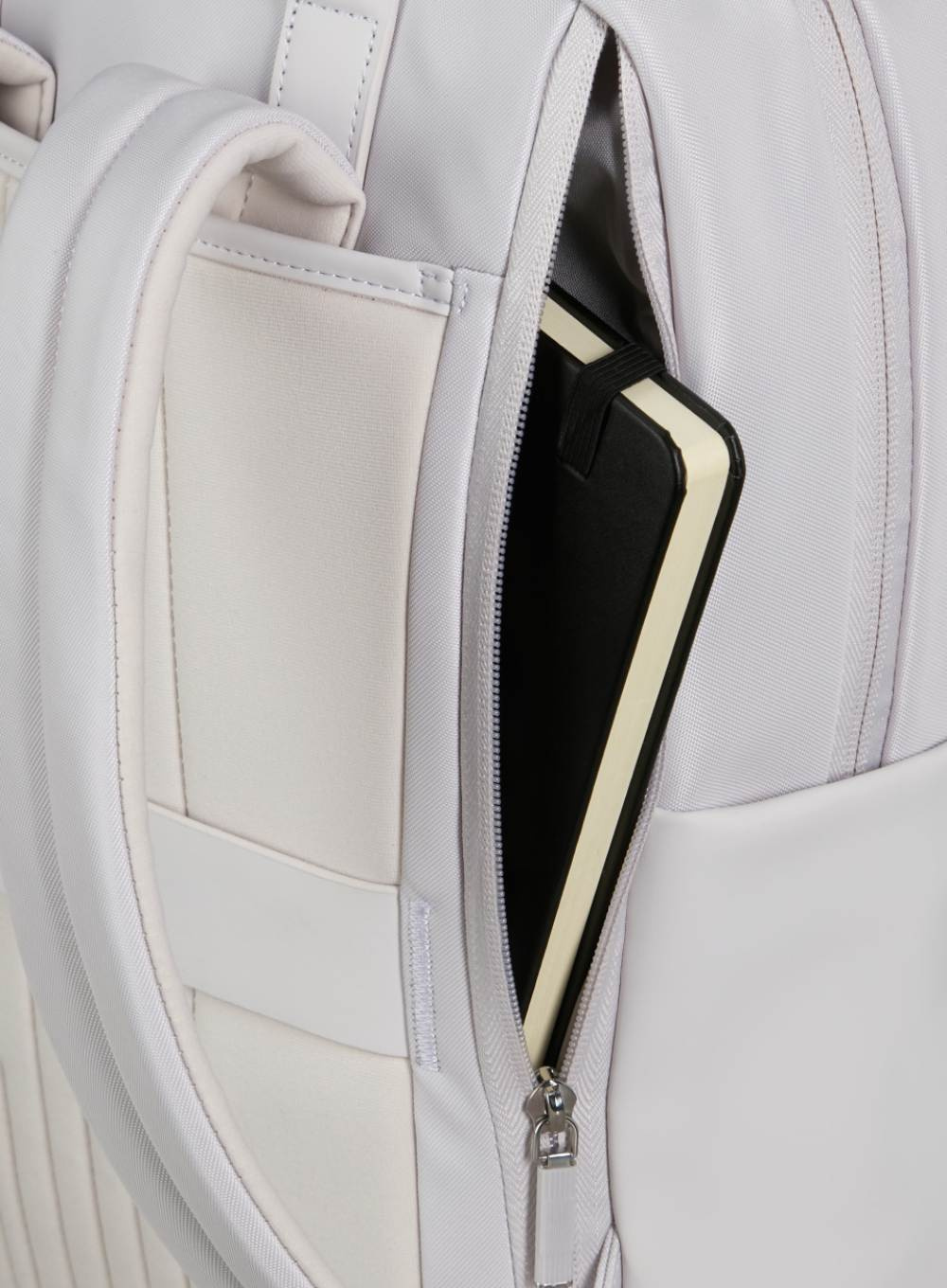 Plecak oferuje doskonałą organizację – liczne kieszenie zewnętrzne i wewnętrzne ułatwiają przechowywanie dokumentów, elektroniki i akcesoriów. Posiada dedykowane, wyściełane kieszenie na laptop 15,6" i tablet 10,5", kieszeń na parasolkę lub butelkę oraz kieszeń z tyłu na cenne przedmioty.