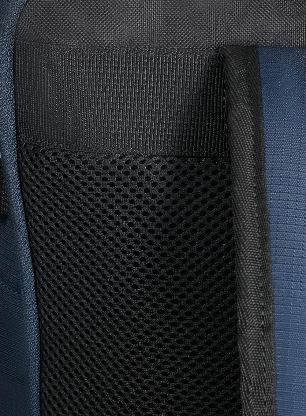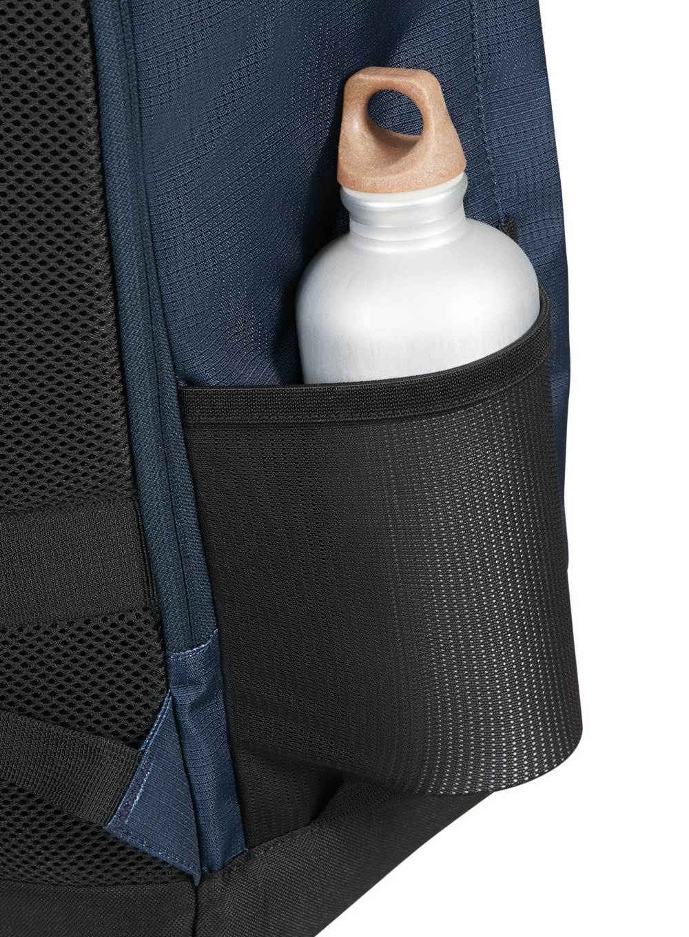 Plecak posiada wygodne pasy ramienne, wyściełany panel tylny i miękkie uchwyty do przenoszenia. Wykończony pasami kompresyjnymi do regulacji objętości na jednym z boków i pasem do mocowania na walizce lub torbie podróżnej. Zarówno wewnętrzna, jak i zewnętrzna tkanina są wykonane z przetworzonych butelek PET.