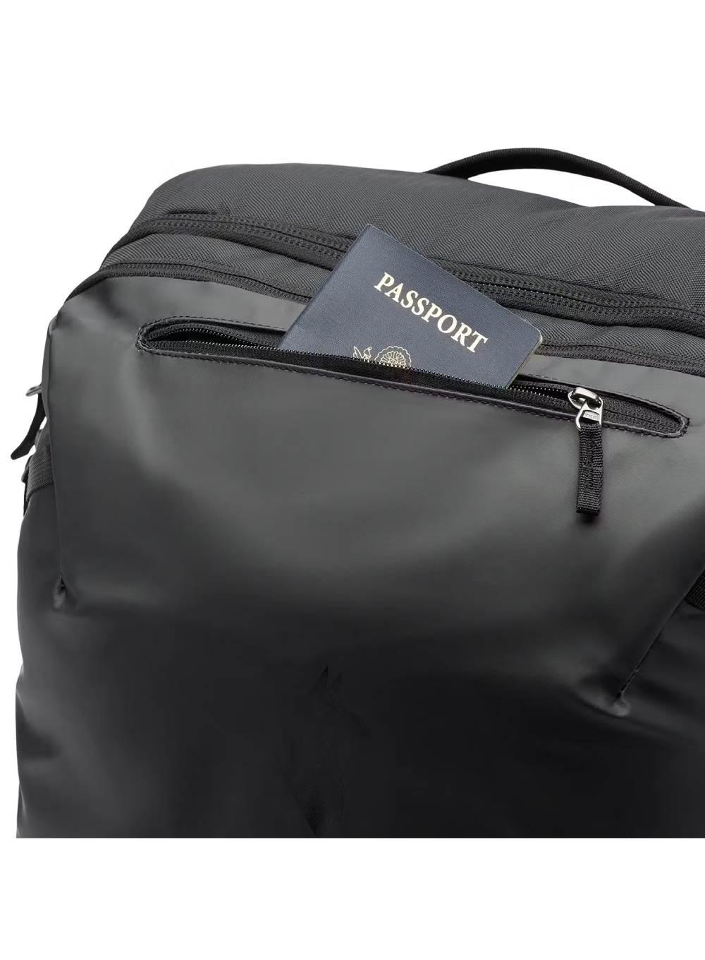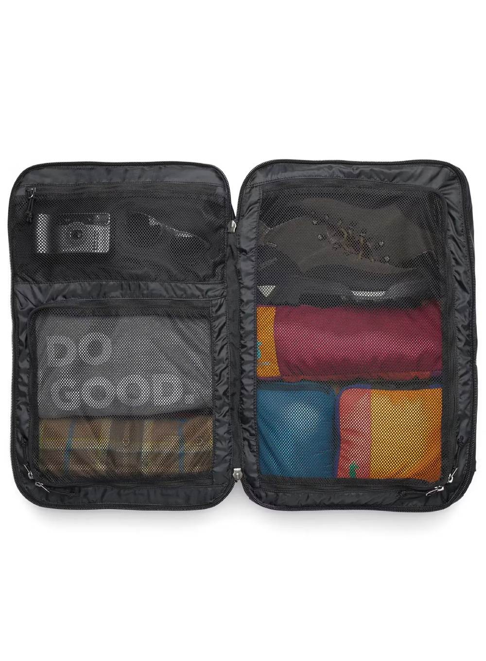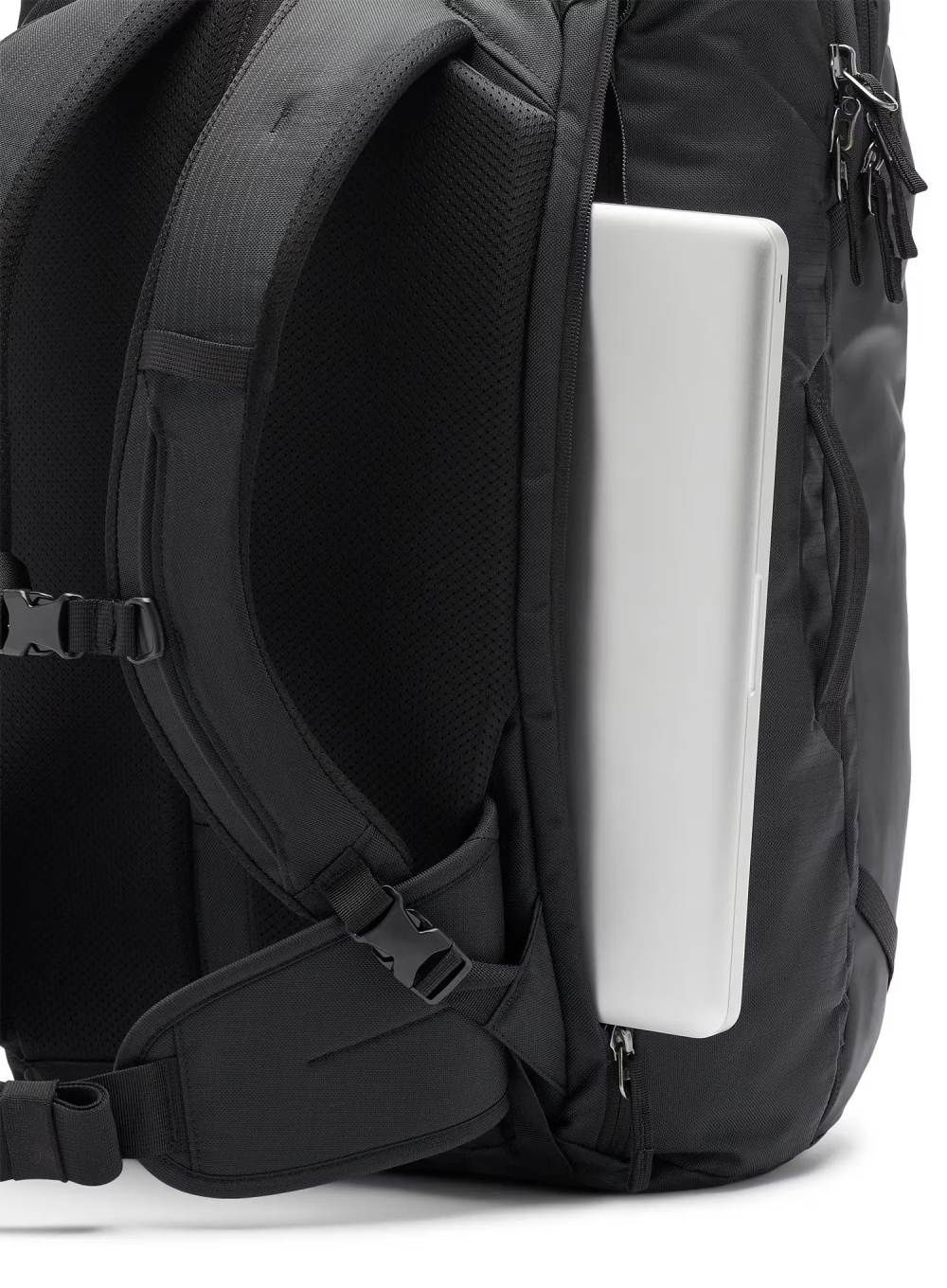 Pojemna komora główna otwierana w stylu walizki ułatwia pakowanie, a przegrody wewnętrzne pomagają utrzymać porządek. Plecak wyposażono w wyściełaną przegrodę na laptop 15", kieszeń na butelkę, pas do mocowania na walizce oraz liczne punkty troczenia.
