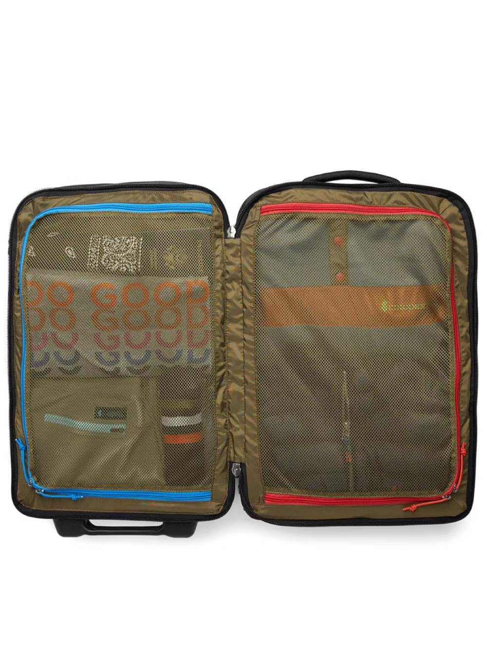 Cotopaxi Allpa Roller Bag 38 l to torba, która łączy funkcjonalność, trwałość i ekologiczną produkcję. Może być zabrana jako bagaż podręczny na pokład samolotu, ale należy upewnić się przed podróżą i sprawdzić wymagania linii lotniczych.